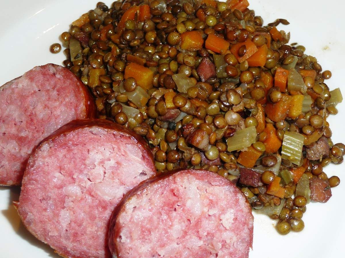 J’ai accompagné mes lentilles d’un magnifique saucisson acheté chez mon boucher préféré. On s’est régalés !