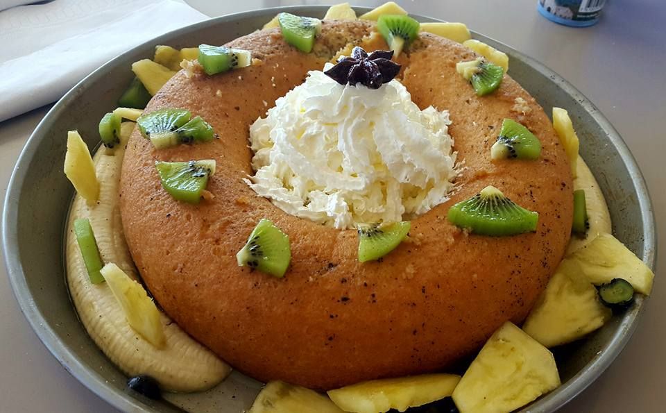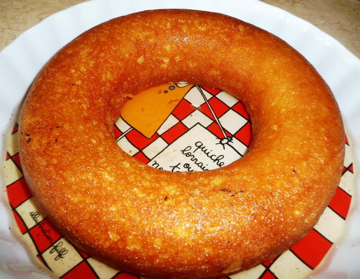 8) Mettre le biscuit dans un récipient plat et profond de quelques centimètres (je l'ai mis dans un moule à tarte). Avec une louche, verser un peu de sirop chaud dessus. Attendre un peu, répéter l'opération. Laisser imbiber. Une heure plus tard, procéder de la même façon et ainsi de suite durant 3 heures environ. Vous aurez probablement trop de sirop, mais peu importe, vous jetterez le reste. Le biscuit sera bien imbibé si lorsque vous appuierez dessus, vous sentirez qu'il est bien mou et ... mouillé. Vous pouvez à ce moment là, en laissant le sirop qui est dans le fond du plat, le mettre au réfrigérateur quelques heures. Frais, c'est meilleur. Je l'ai même gardé encore jusqu'au lendemain et il était parfait.