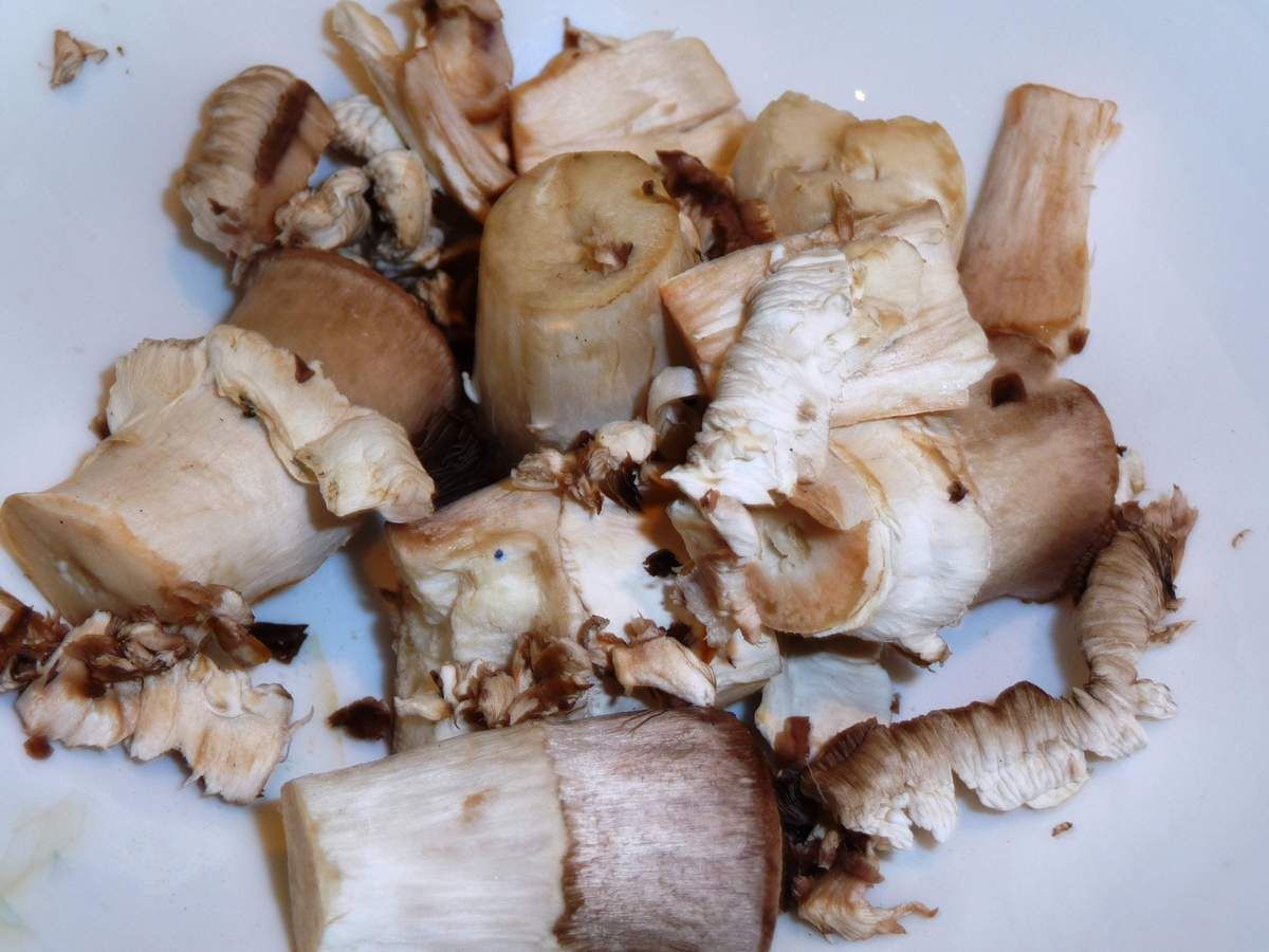 1) Retirer les pieds des champignons en les tournant sur eux-mêmes. Couper l'extrémité des pieds sur 2mm et jeter. Conserver les pieds dans un bol.