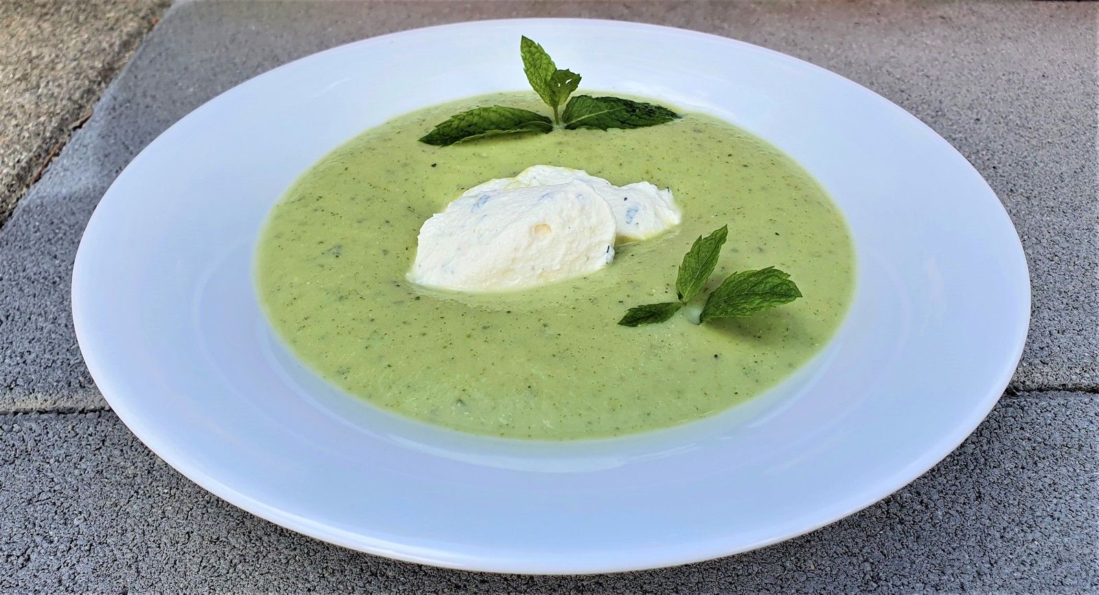 C'est une entrée... comment dire? Fraîche, revigorante et pleine de goûts. La menthe et la courgette, quel beau mariage, ça ne se discute pas!