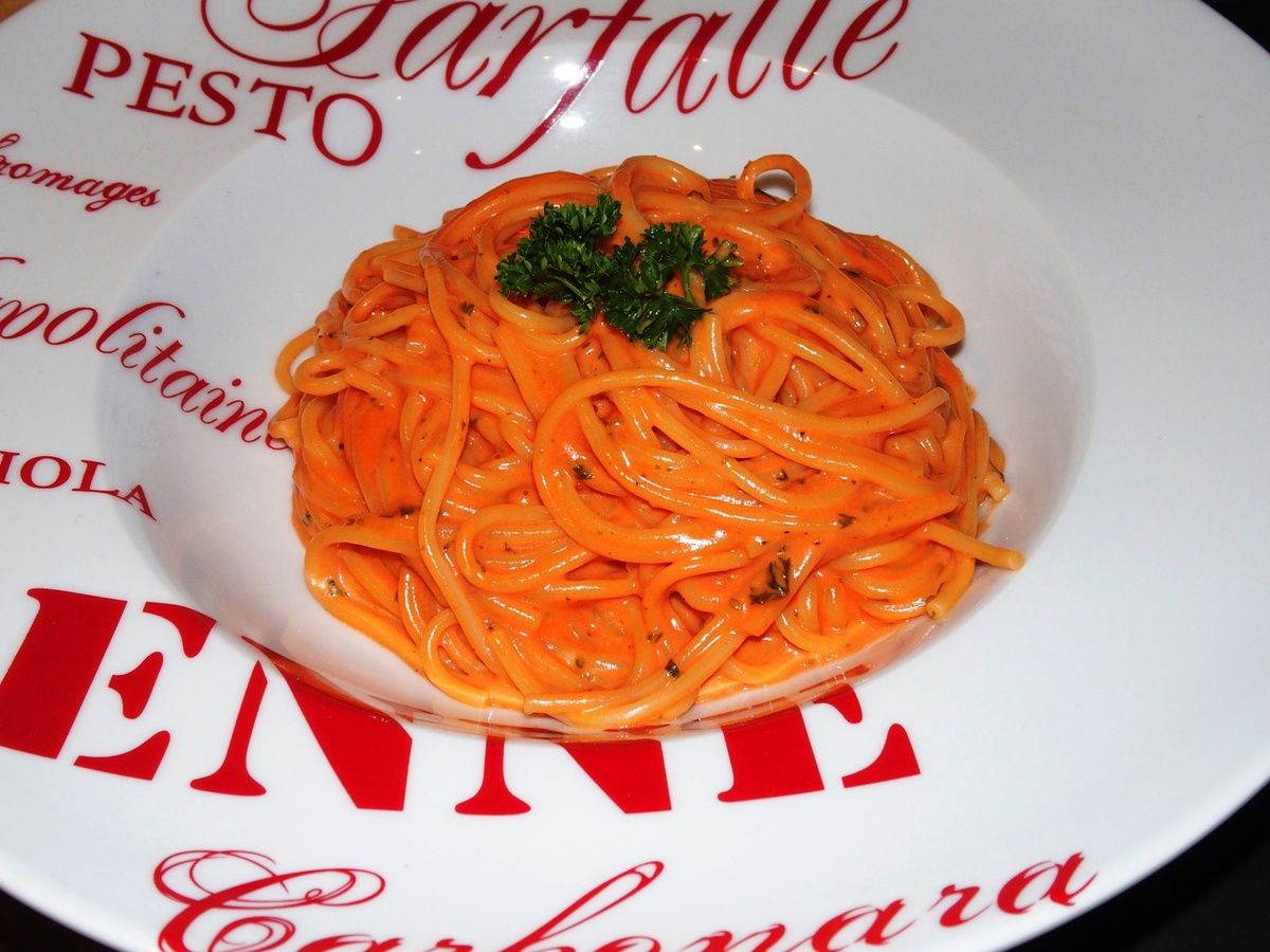 Je suis tombée par hasard sur cette sauce car j’avais de la tomate concentrée et de la crème fraîche à finir.... finalement je l’ai trouvée très bonne avec des tagliatelles, j’ai même mangé le reste de sauce à la cuillère !! C’est sûr, ça ne vaut pas une sauce tomate entièrement faite avec des produits frais mais ne comparons pas ce qui n’est pas comparable, cette petite sauce, je la garde dans mon carnet, elle le mérite bien....