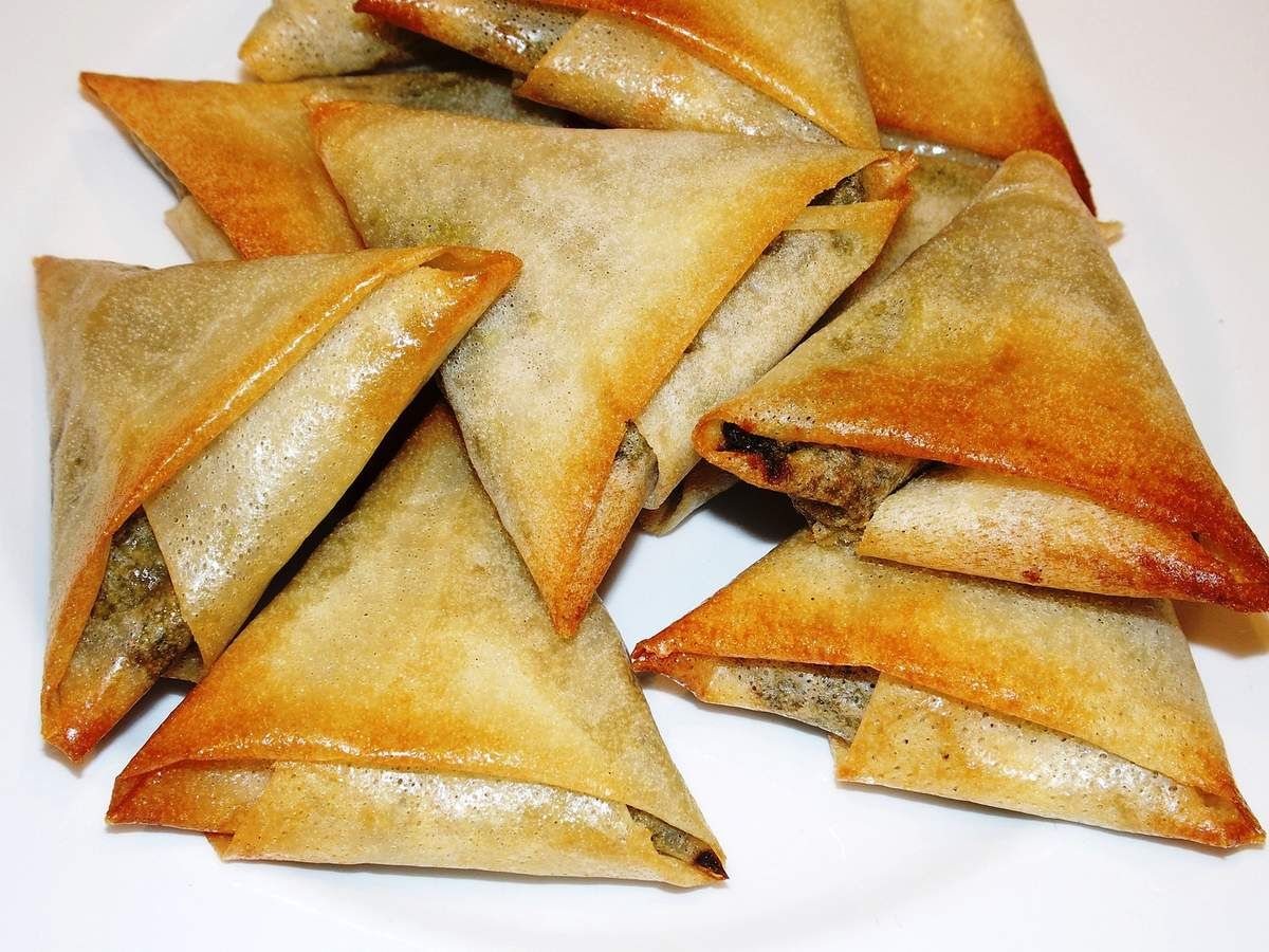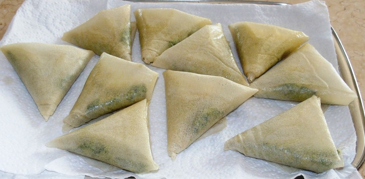Samossas au chèvre, épinards et pignonsSamossas au chèvre, épinards et pignons