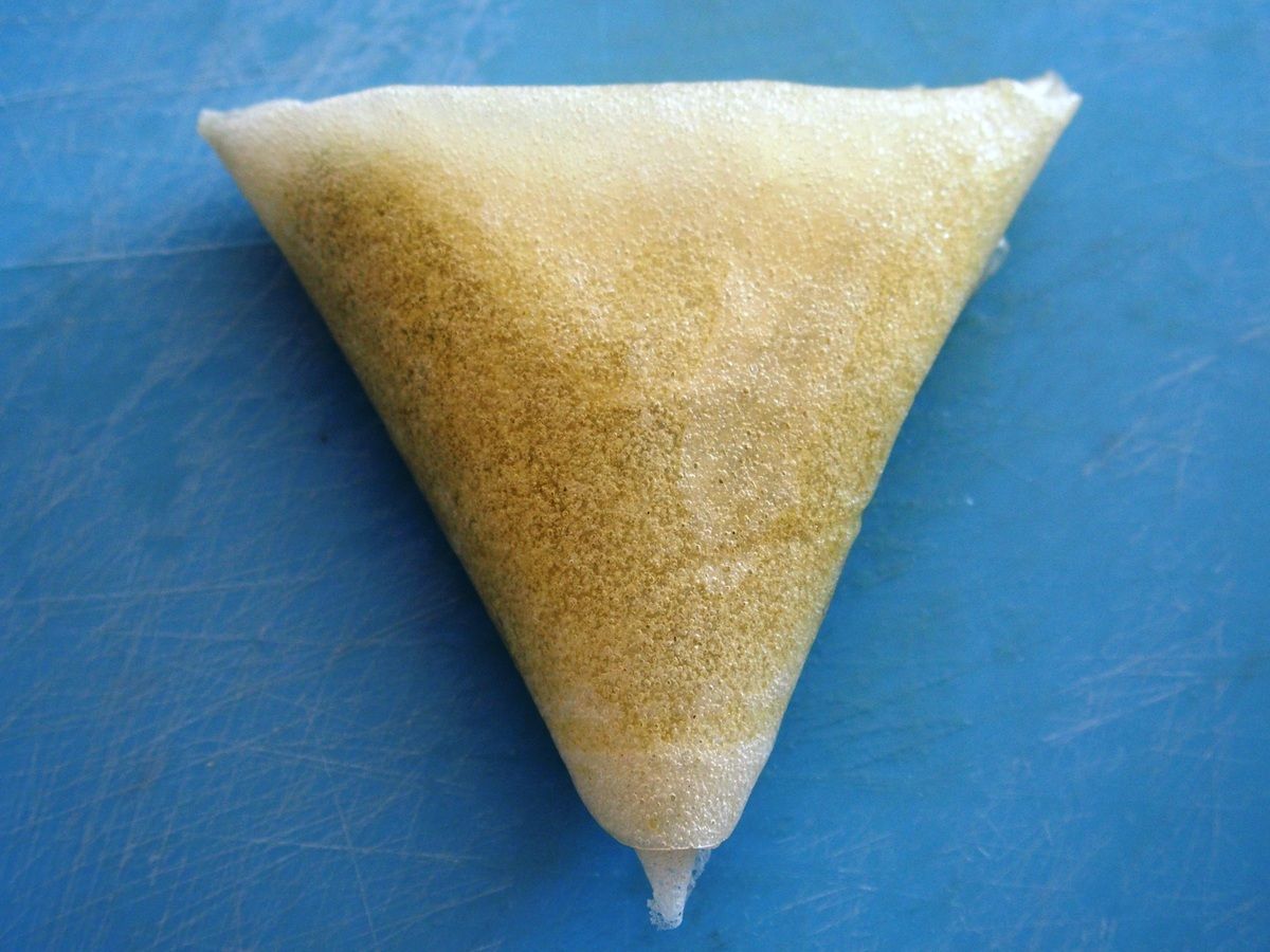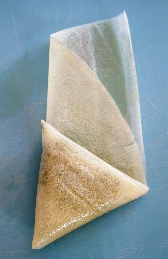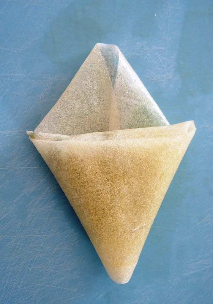 3) Nous allons maintenant façonner les samossas. N'ayez crainte, tout va bien se passer. Vous n'êtes pas seuls, je suis avec vous en image et mentalement aussi. :-).