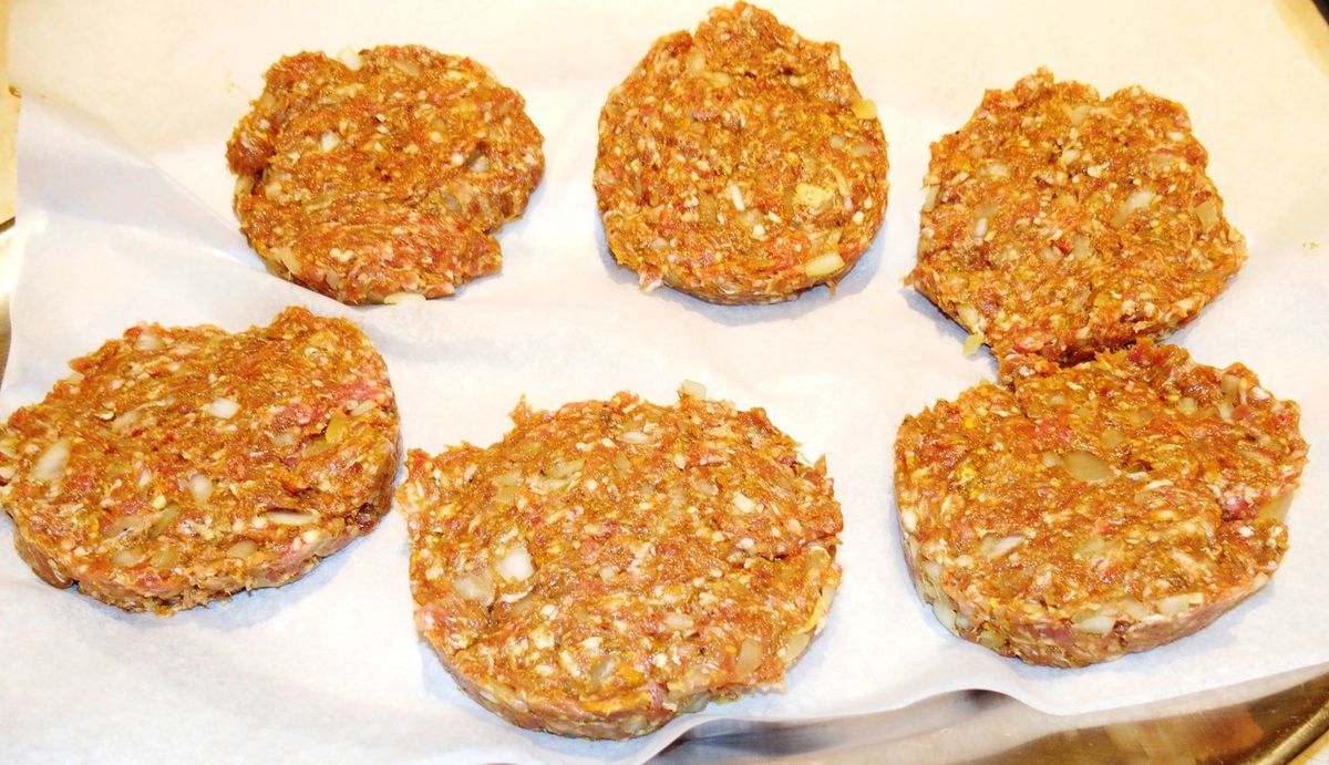 2) Avant de façonner les burgers, vous pouvez en tester l'assaisonnement en formant une toute petite mini galette ridicule et rapidement la saisir à la poêle. Enfin, à vous de voir. Parce que goûter à cru, c'est pas terrible... Sinon, faites-moi et faites-vous confiance! Façonner des burgers d'environ 10cm de diamètre et 1,5cm d'épaisseur. Moi j'ai utilisé un emporte-pièce que j'ai rempli de moitié puis j'ai aplati le tout avec le fond d'un verre. Disposer les burgers sur du papier sulfurisé dans un plat.