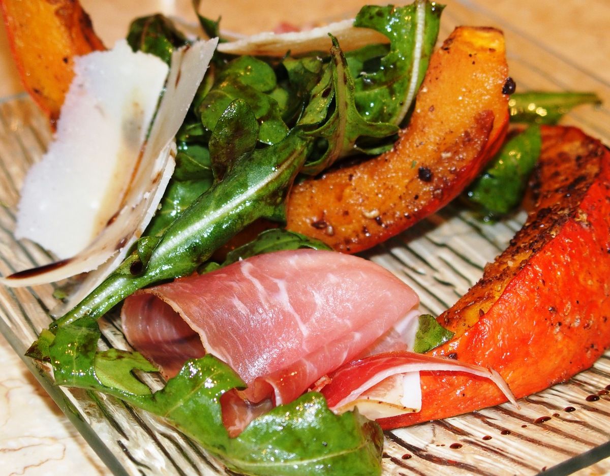Salade de potimarron, jambon cru et parmesan