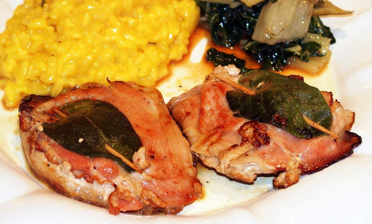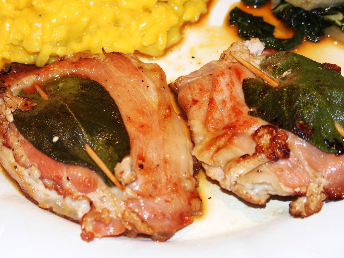 Un plat tout simple et extraordinaire. Accompagné d'un risotto à la milanaise, c'est délicieux. Les saltimbocca, ce sont de fines tranches de veau avec une tranche de jambon cru et une feuille de sauge piquées avec un cure-dents.