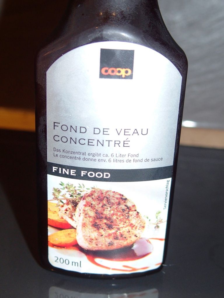 J'utilise souvent du fond de veau concentré dans mes recettes. Parce que j'en ai trouvé un qui est vraiment top de chez top et que vous trouverez à la Coop au rayon des cubes de bouillons et autres. Il en faut très peu pour donner un super goût aux sauces, alors vous pourrez le conserver longtemps au réfrigérateur. Je vous le conseille vraiment (photo plus bas). Sinon vous pouvez aussi utiliser du fond de veau en poudre ou du fond de volaille en poudre ou en cubes (mais le goût est différent et moins prononcé).