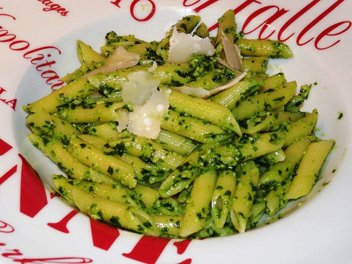 Un délicieux pesto à l'ail des ours avec des amandes moulues qui donnent du moelleux, du parmesan et des pignons qui donnent du croquant...