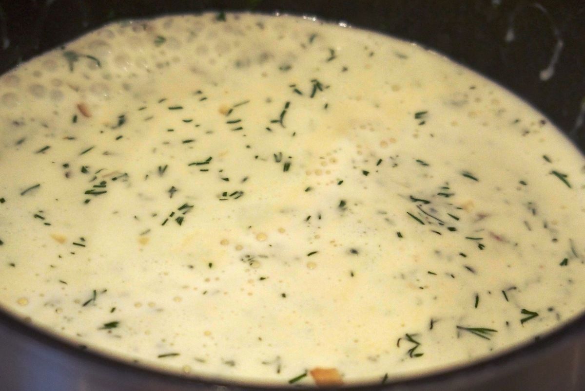 8) Pendant ce temps, préparer la sauce. Hacher l'échalote finement. Dans une petite casserole, faire fondre le beurre puis faire revenir l'échalote 1 minute à feu moyen-vif. Ajouter le vin blanc et le demi bouillon de volaille. Poivrer. Faire complètement réduire (environ 15 à 20 minutes). Lorsqu'il n'y a pratiquement plus de liquide, ajouter la crème, 1 càs de jus de citron et l'aneth restant (la moitié du bouquet que vous avez déjà ciselé). Laisser mijoter 5 à 10 minutes à feu moyen-doux. Goûter et rectifier l'assaisonnement. Stopper le feu et couvrir. Vous la réchaufferez juste avant de servir.