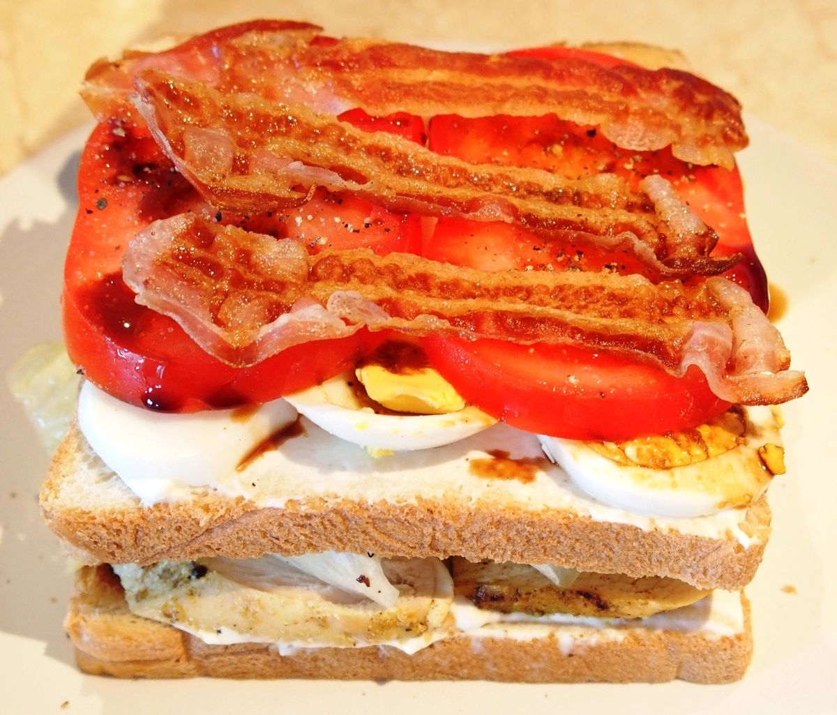 Bienvenue au club et régalez-vous avec ce premier club au poulet, oeuf, lard et plein de choses encore...
