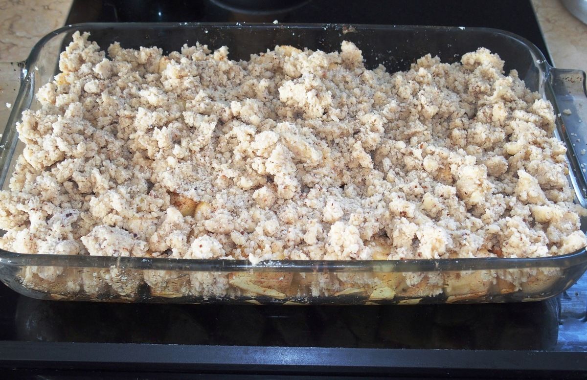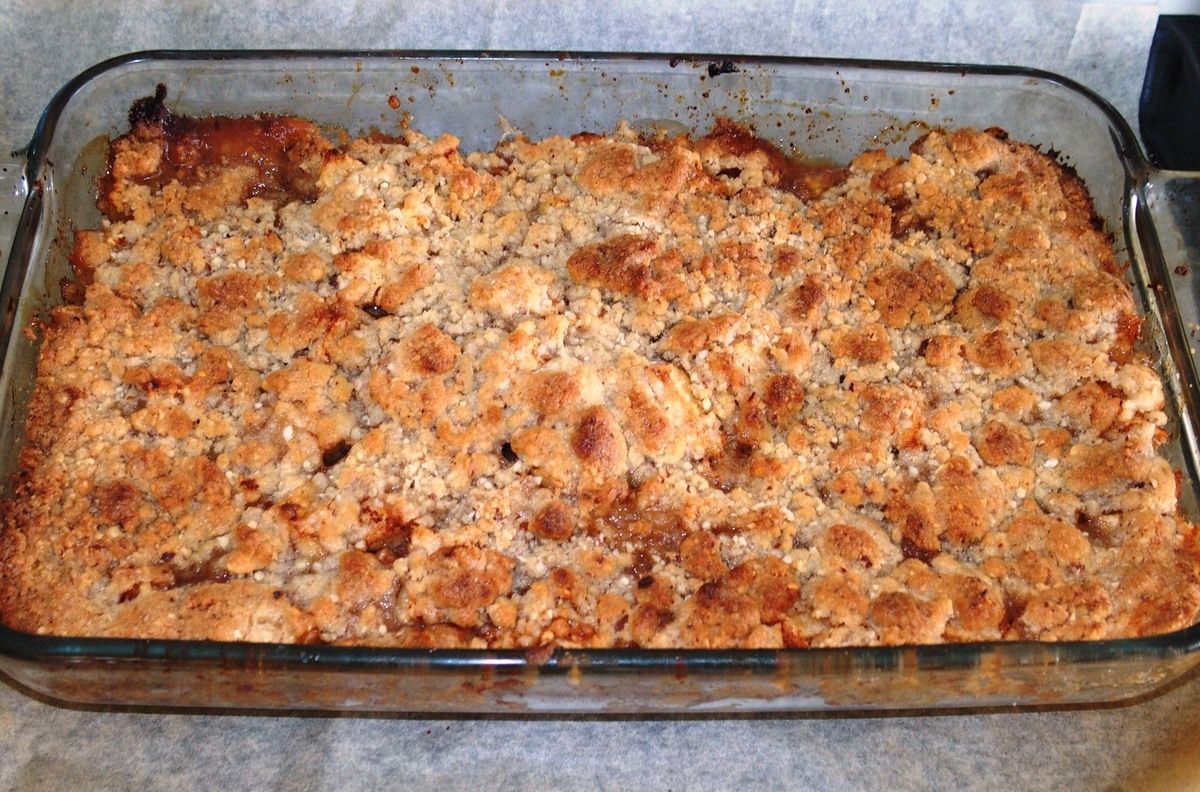 3) Enfourner pour 30 à 35 minutes dans le milieu du four préchauffé à 180°C jusqu'à ce que le crumble soit bien doré et que les pommes fassent des petites bulles. Sortir et laisser tiédir (20 à 30 minutes) puis servir, avec une boule de glace vanille par exemple.