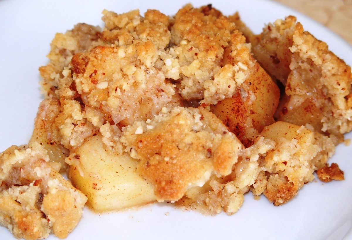 De belles pommes fondantes aromatisées avec de la cannelle, du miel et du jus de citron et un crumble moelleux et croustillant à la fois.