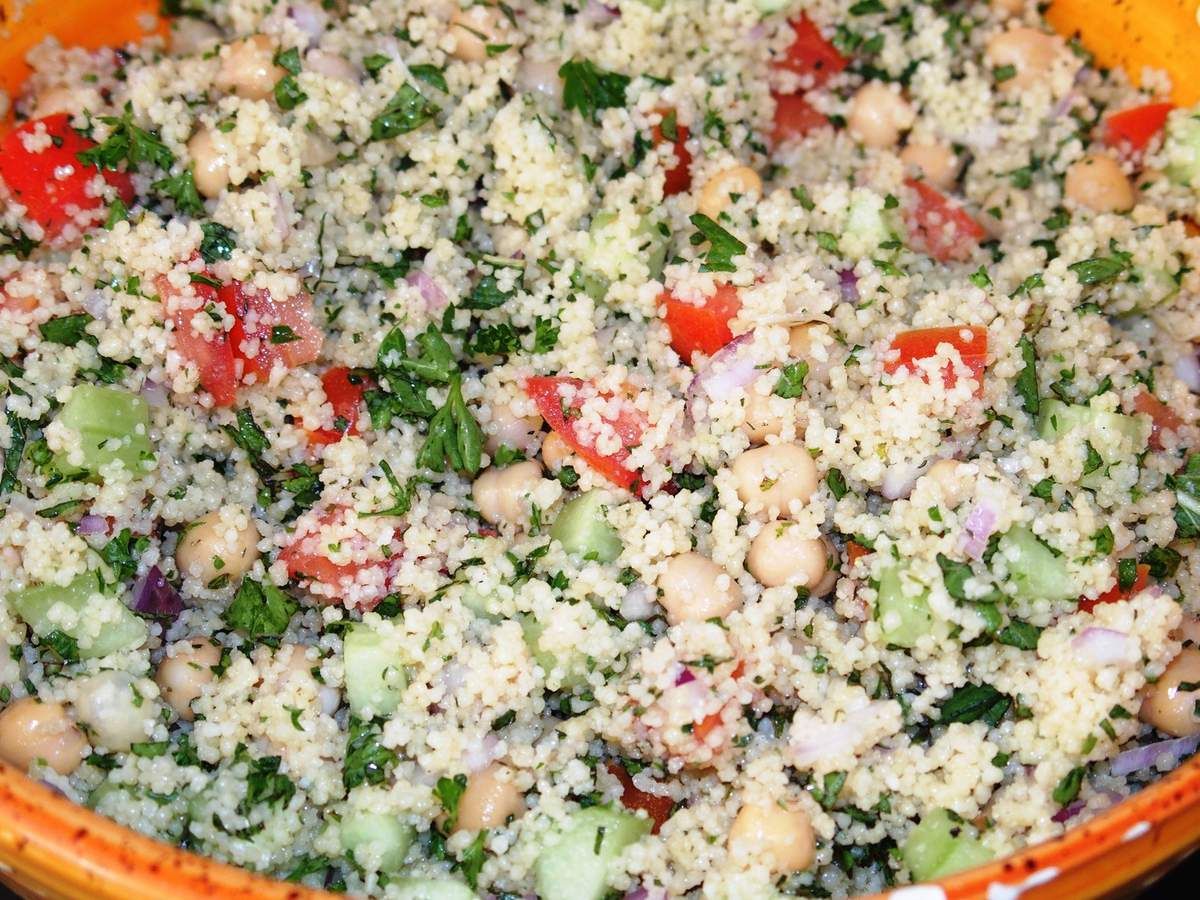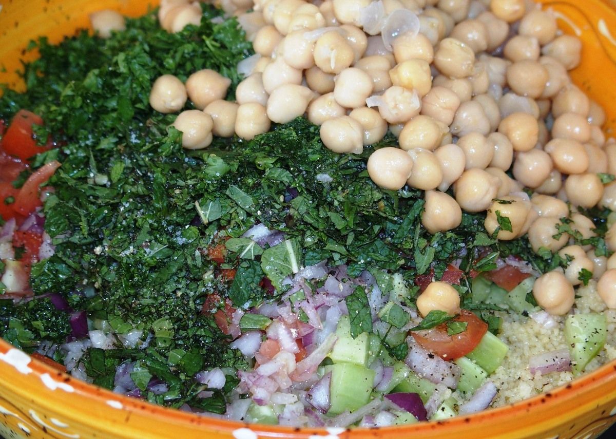 4) Placer le taboulé au réfrigérateur durant au moins 1 heure pour que les arômes se développent parfaitement. Ou le faire même la veille. Au moment de servir, goûter et rectifier l’assaisonnement (vous devrez probablement ajoutez un peu de sel et un filet d’huile d’olive).