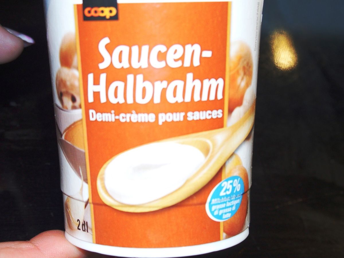 J'ai utilisé de la demie-crème à sauce (voir photo plus bas) et j'y ai ajouté un peu de fécule pour épaissir le tout. Parfait.
