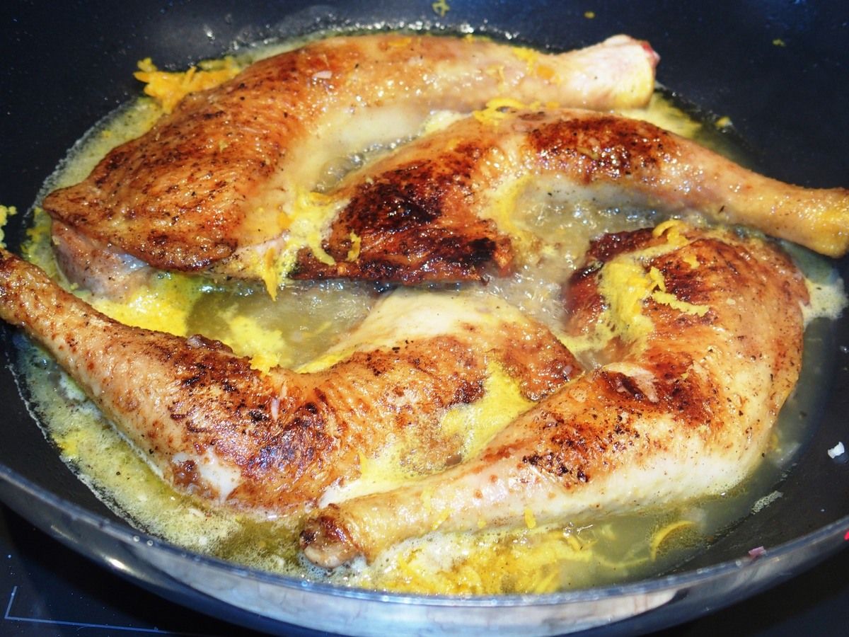 Cuisson: 1h05 pour des cuisses et 30 minutes pour des filets ou des escalopes