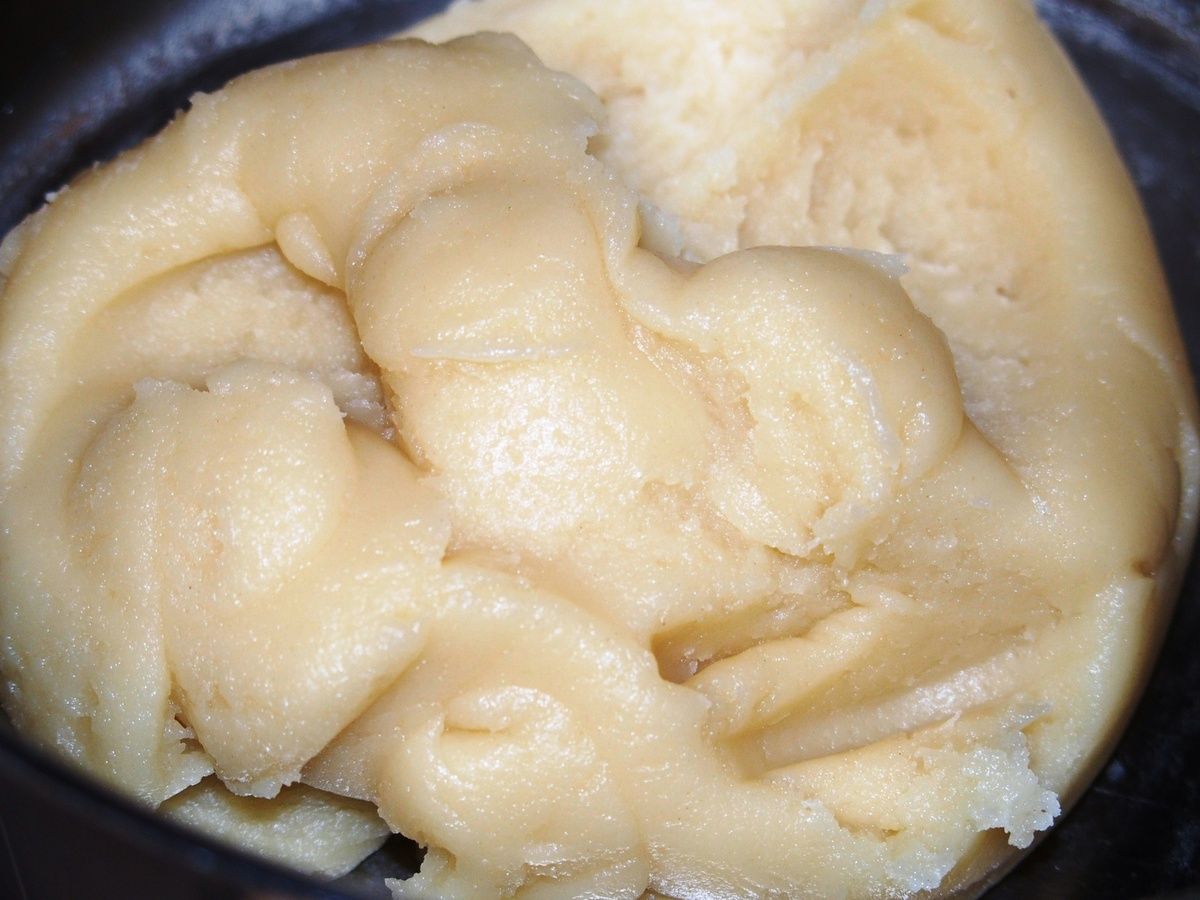 3) Verser les oeufs petit à petit, donc en plusieurs fois. Mélanger vivement à chaque fois. Au début, vous penserez peut-être que les oeufs ne se mélangent pas à la pâte, mais vous verrez que c'est faux. Un peu de patience et... mélangez! Jusqu'à ce que la pâte soit bien lisse! Comme ça: