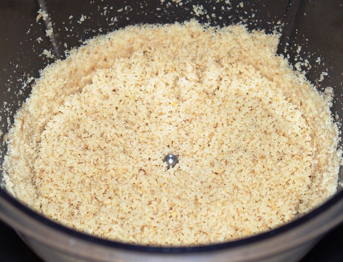 1) Dans un mixeur, mettre 130g de cerneaux de noix environ. Mixer en poudre fine et réserver. Concasser le solde d'environ 70g grossièrement et réserver aussi.
