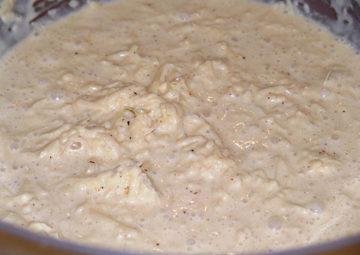Pour une liaison parfaite, je mets de la crème entière, du lait, des oeufs et de la farine. Et du fromage bien entendu: gruyère et emmental.