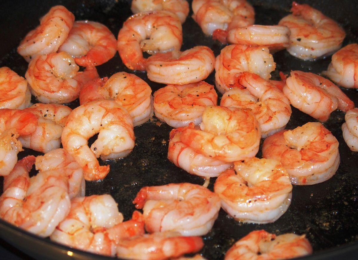 6) Pendant ce temps, faire revenir les queues de crevettes 2 à 3 minutes dans une poêle dans un peu d'huile, jusqu'à ce qu'elles soient roses (pas plus). Saler et poivrer.