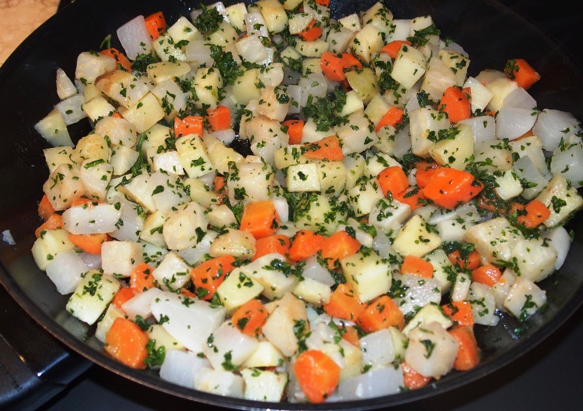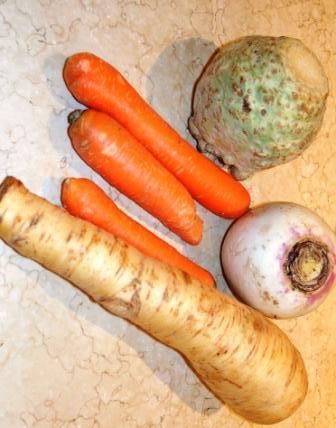 Un accompagnement pour vos invités (ou pour vous seulement) qui en jette. Tout bête et bon. Et avec des légumes de saison, s'il vous plaît. Panais, rave (navet), carottes et céleri.