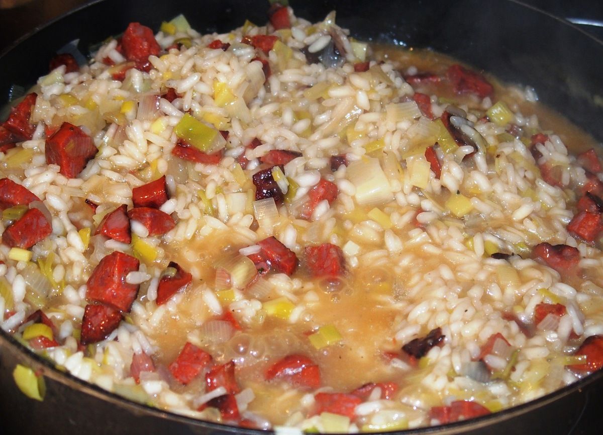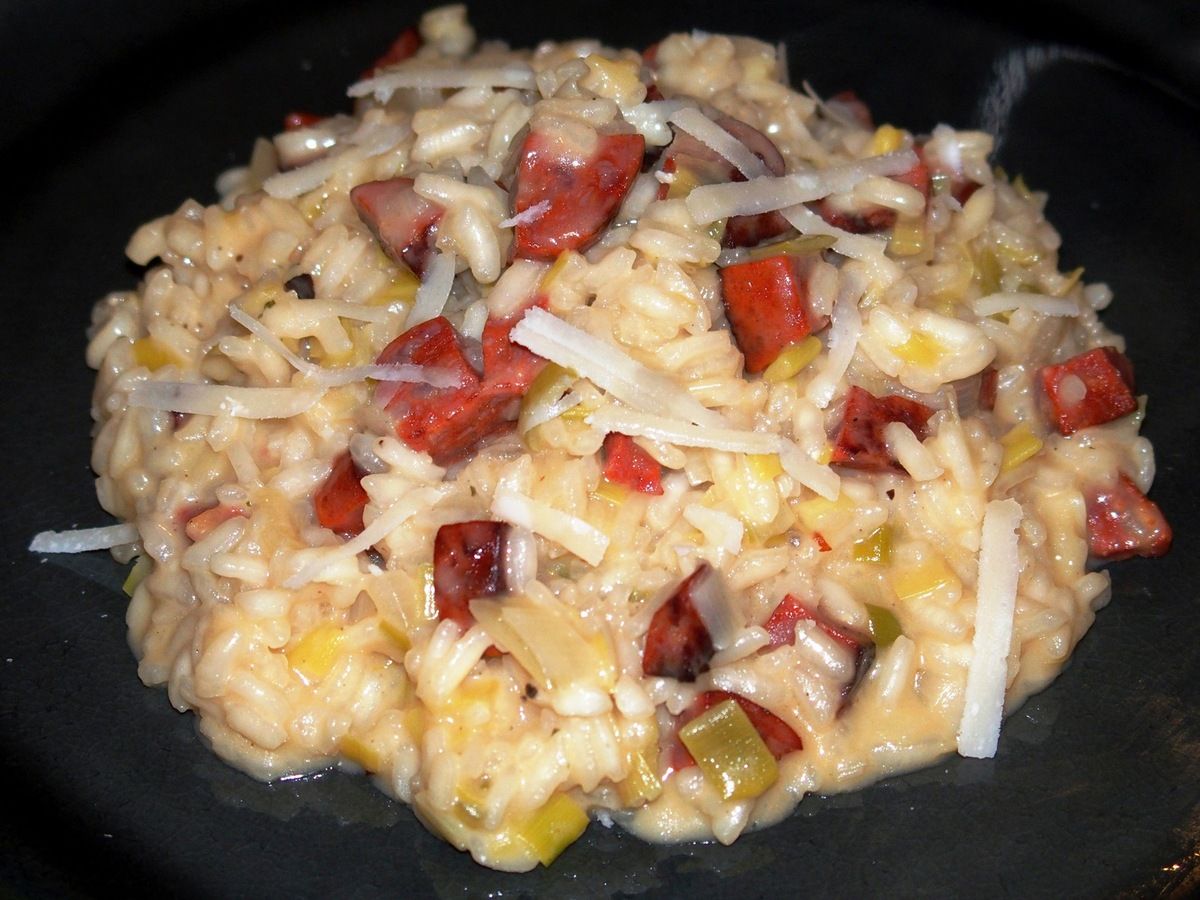Vous aimerez j'en suis certaine, ce petit risotto moelleux aux poireaux avec ce goût typique de chorizo. Un délice!