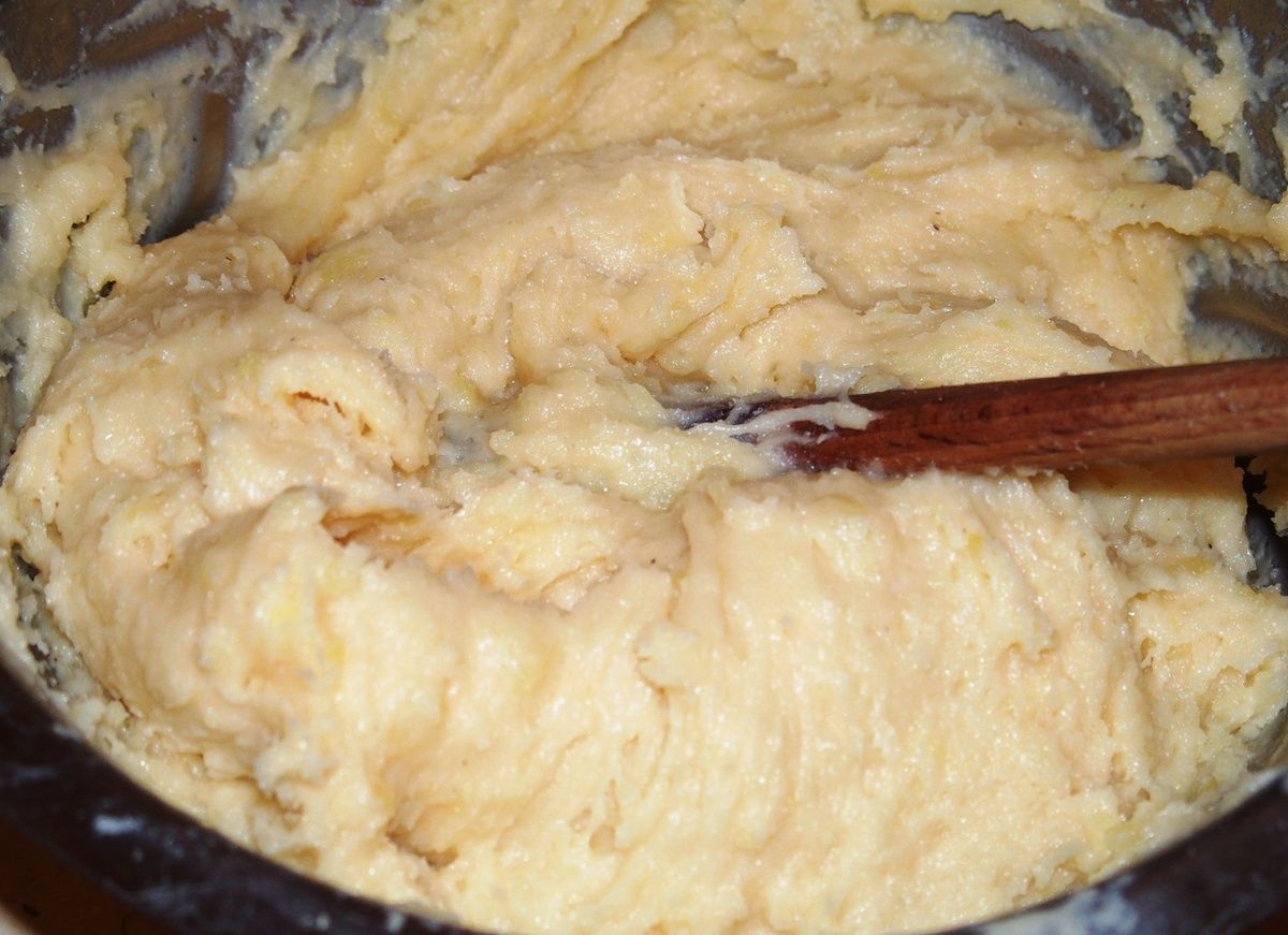 4) Verser les oeufs petit à petit, donc en plusieurs fois. Mélanger vivement à chaque fois. Au début, vous penserez peut-être que les oeufs ne se mélangent pas à la pâte, mais vous verrez que c'est faux. Un peu de patience et... mélangez! Jusqu'à ce que la pâte soit bien lisse! Comme ça: