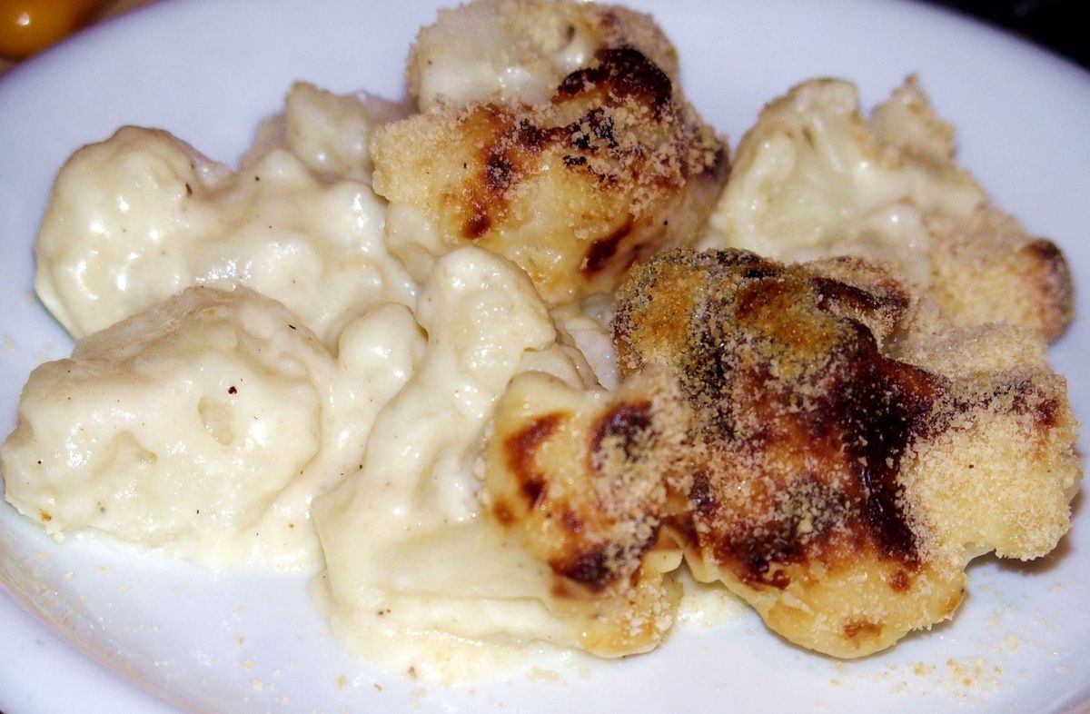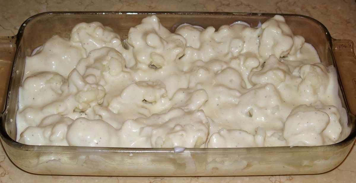 3) Beurrer un plat à gratin et y déposer les sommités du chou-fleur. Verser par-dessus la béchamel puis au dernier moment avant d'enfourner, parsemer de chapelure.