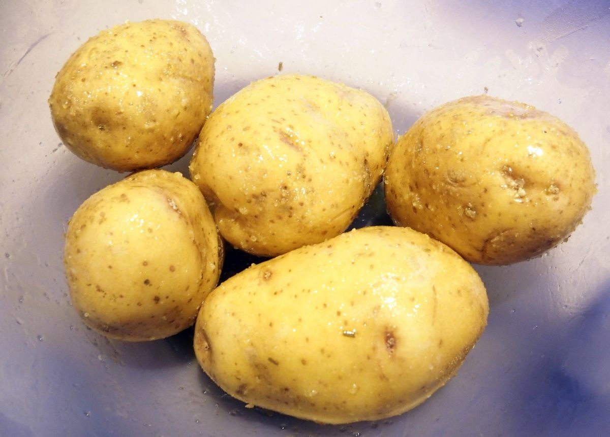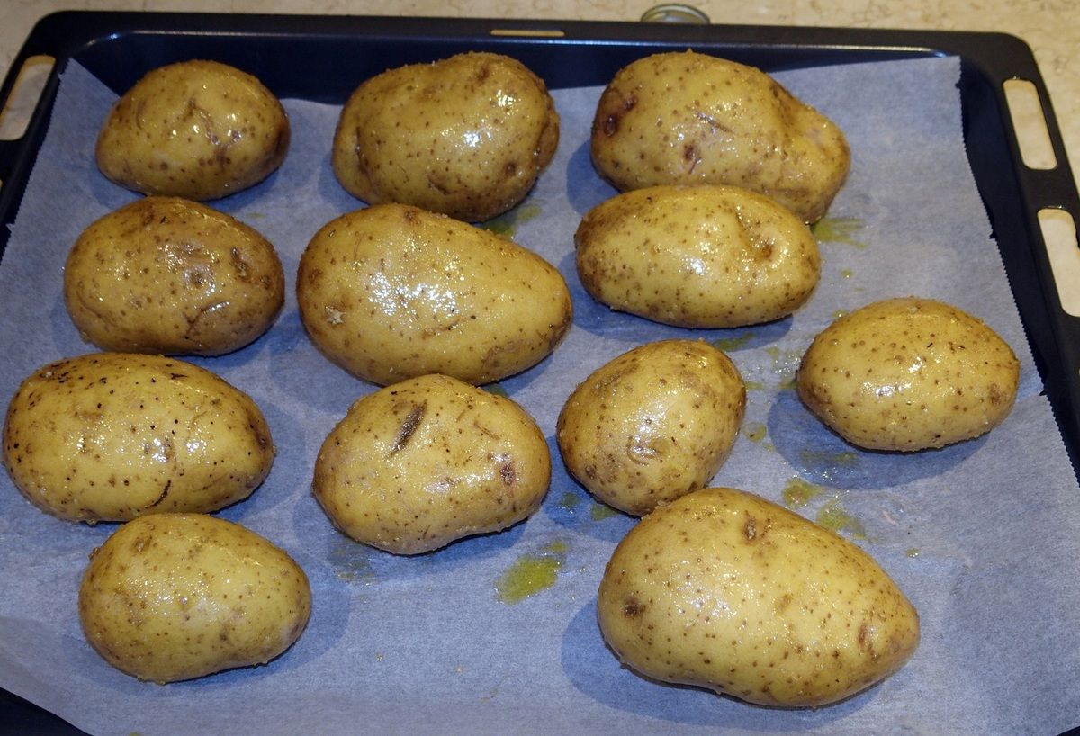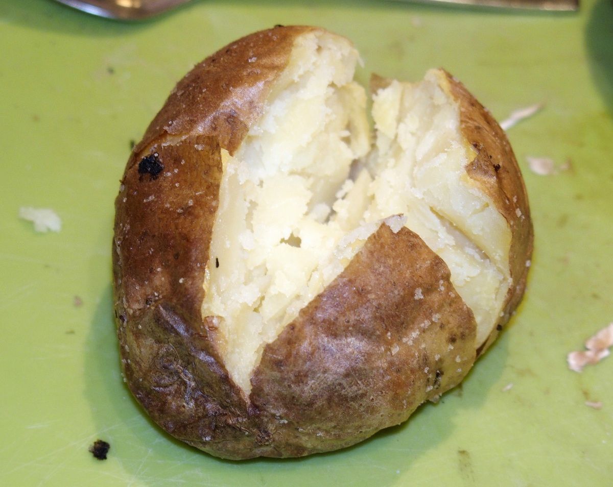 3) Lorsque les pommes de terre sont cuites, les inciser en croix en profondeur.