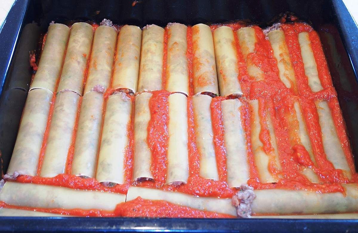 Cuisson: 1 heure pour la sauce tomate et 35 minutes pour les cannelloni
