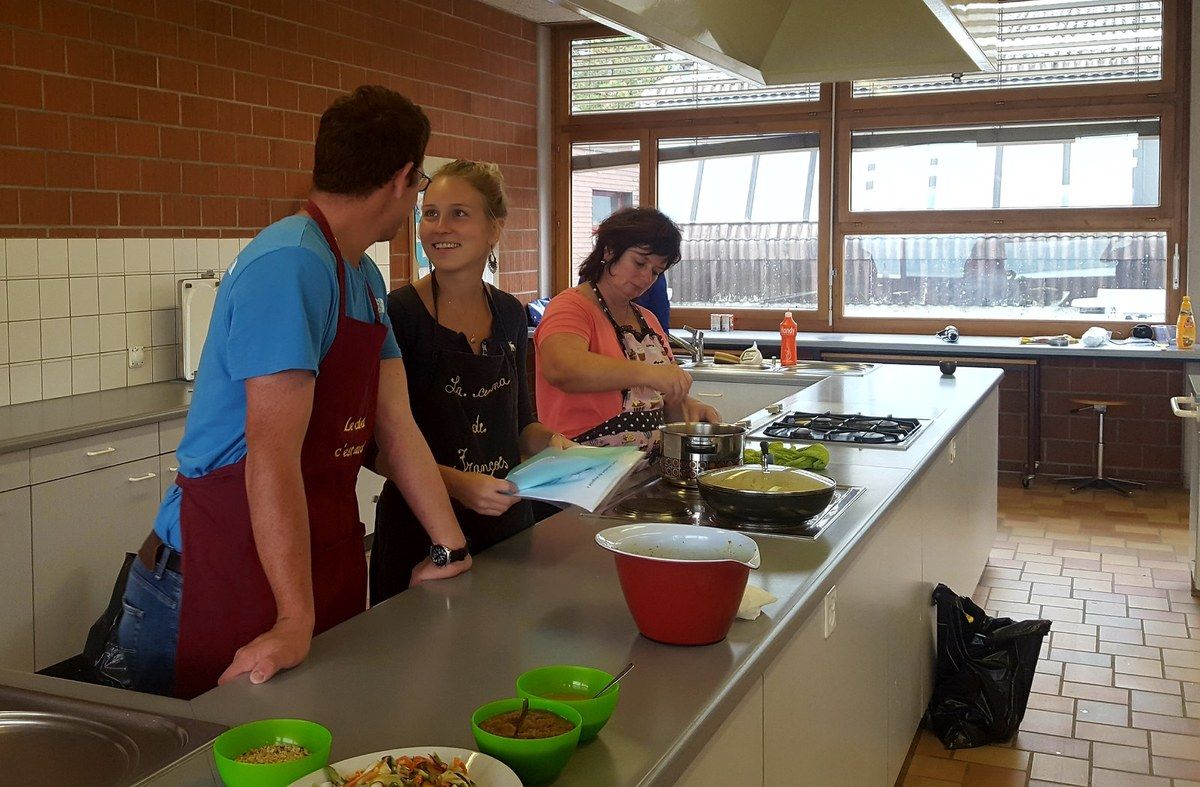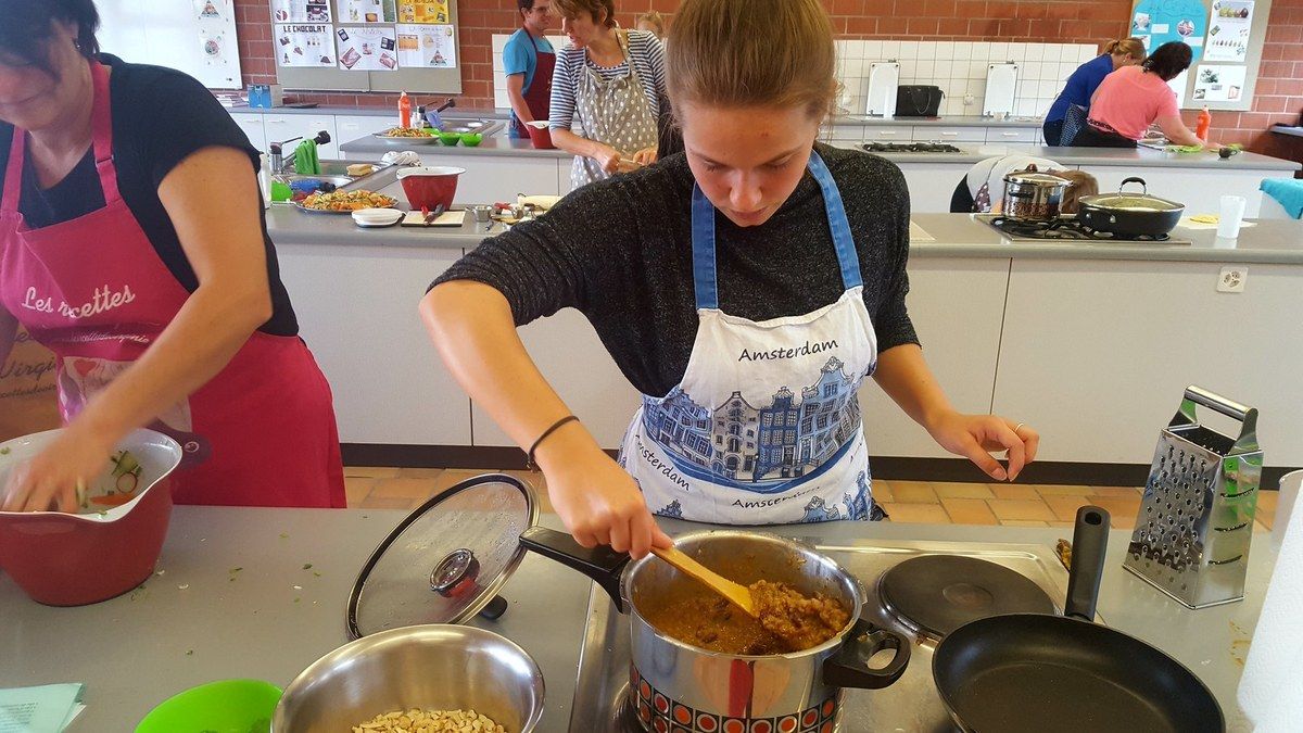 Cours de cuisine du samedi 30 septembre sur le nouveau thème de la cuisine indienne. Une équipe super dynamique et chaleureuse. Qui a réalisé d'une main de maître un dhal aux lentilles et haricots rouges, des chaussons aux pommes de terre et petits pois, un condiment aux dattes, une sauce à la coriandre, une salade sauce aux graines de fenouil, un poulet korma et une crème à la mangue. Rien que ça! Comme c'était cool, je les remercie de tout coeur.