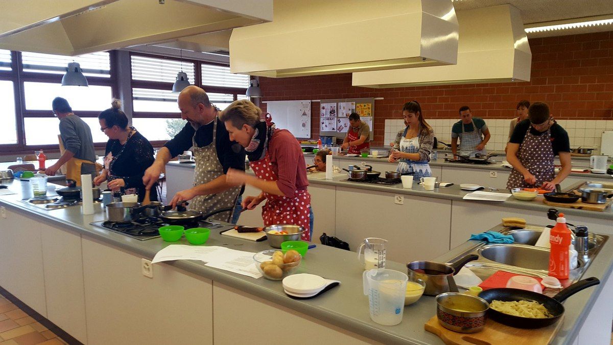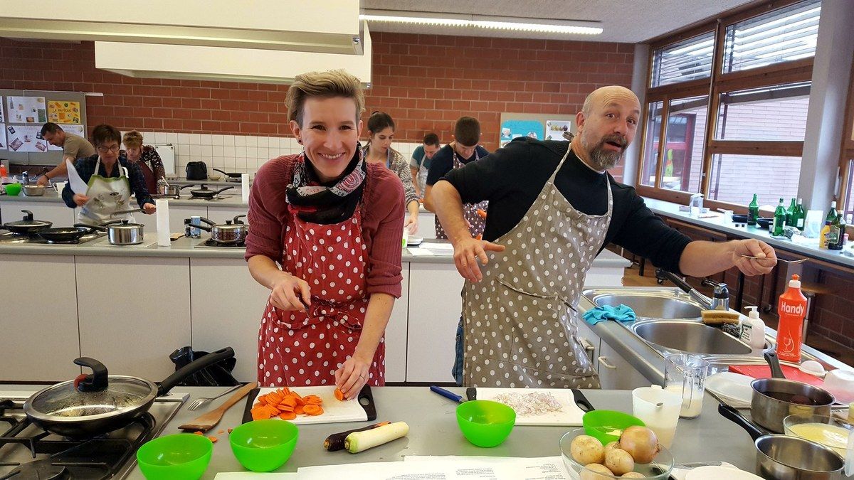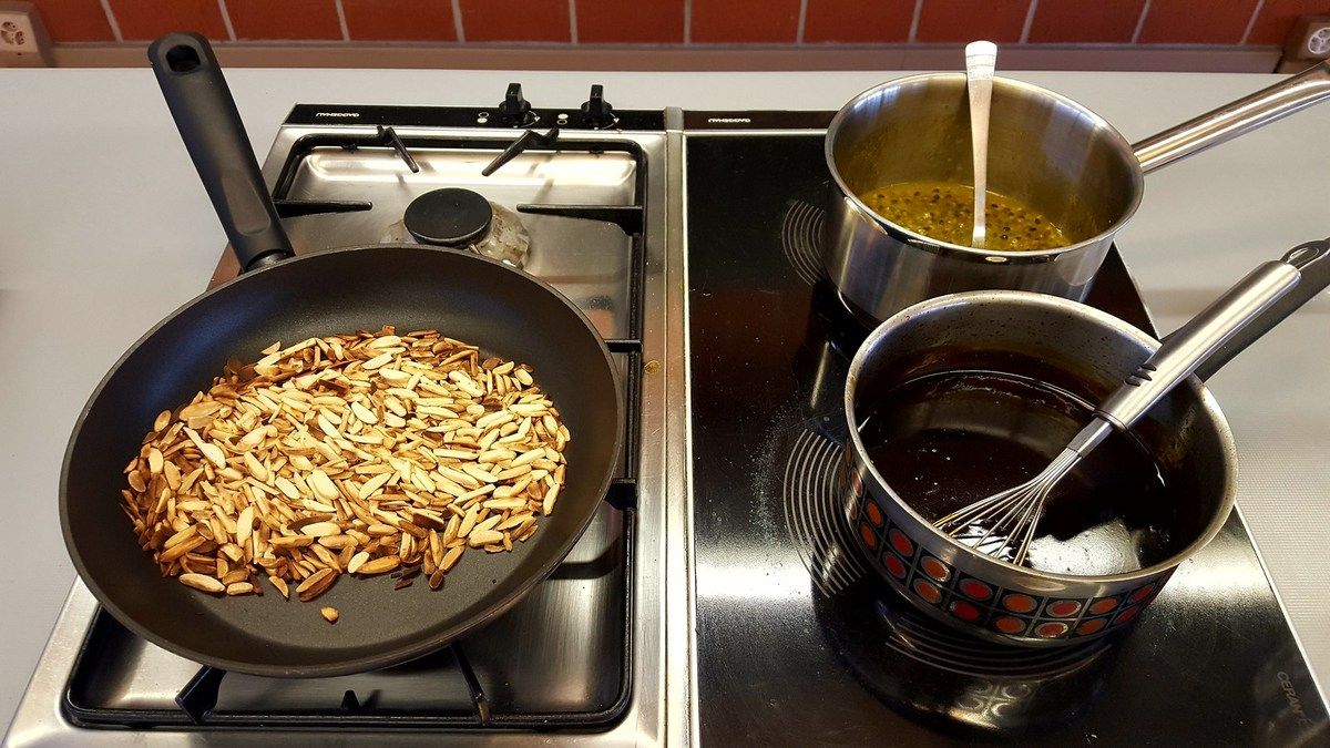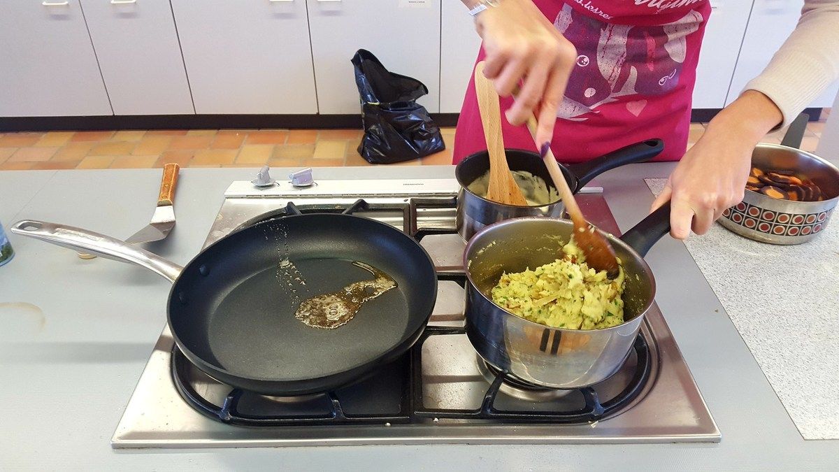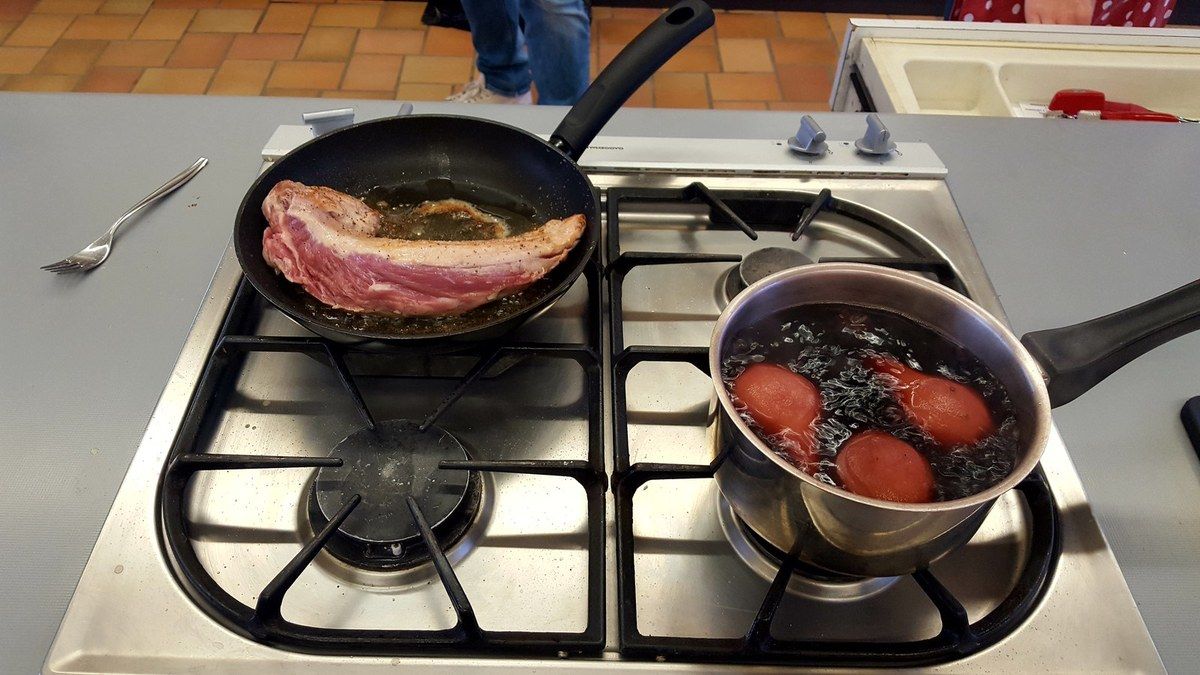 Alors là c'était vraiment top. Je fais encore un gros bec à mes 6 petits couples trop géniaux. Et à mon homme qui m'a épaulée. On a passé un moment super au cours de cuisine d'aujourd'hui. La cuisine à deux, que du bonheur. Au menu panna cotta de foie gras et coulis de fruits de la passion, coeurs de poulet teriyaki en brochettes, filets de daurade sur embeurrée de fenouil, sauce à la mandarine, filet mignon en cuisson lente, crème de truffe, purée au persil montée à l'huile d'olive et poêlée de carottes multicolores, poires pochées au vin rouge et aux épices sur crème anglaise au lait d'amandes. Du taf mais dans l'amûûûr et la bonne humeur.
