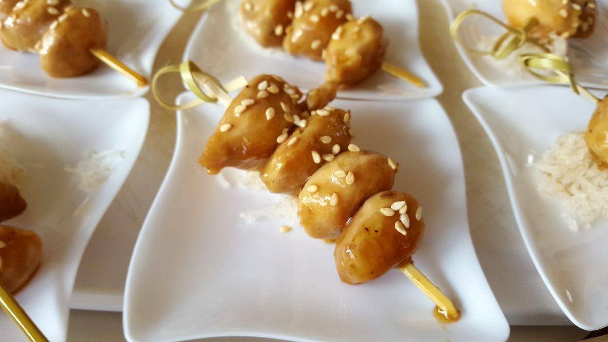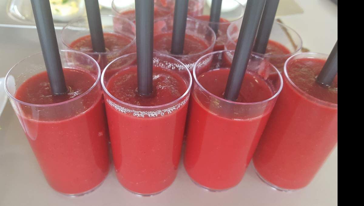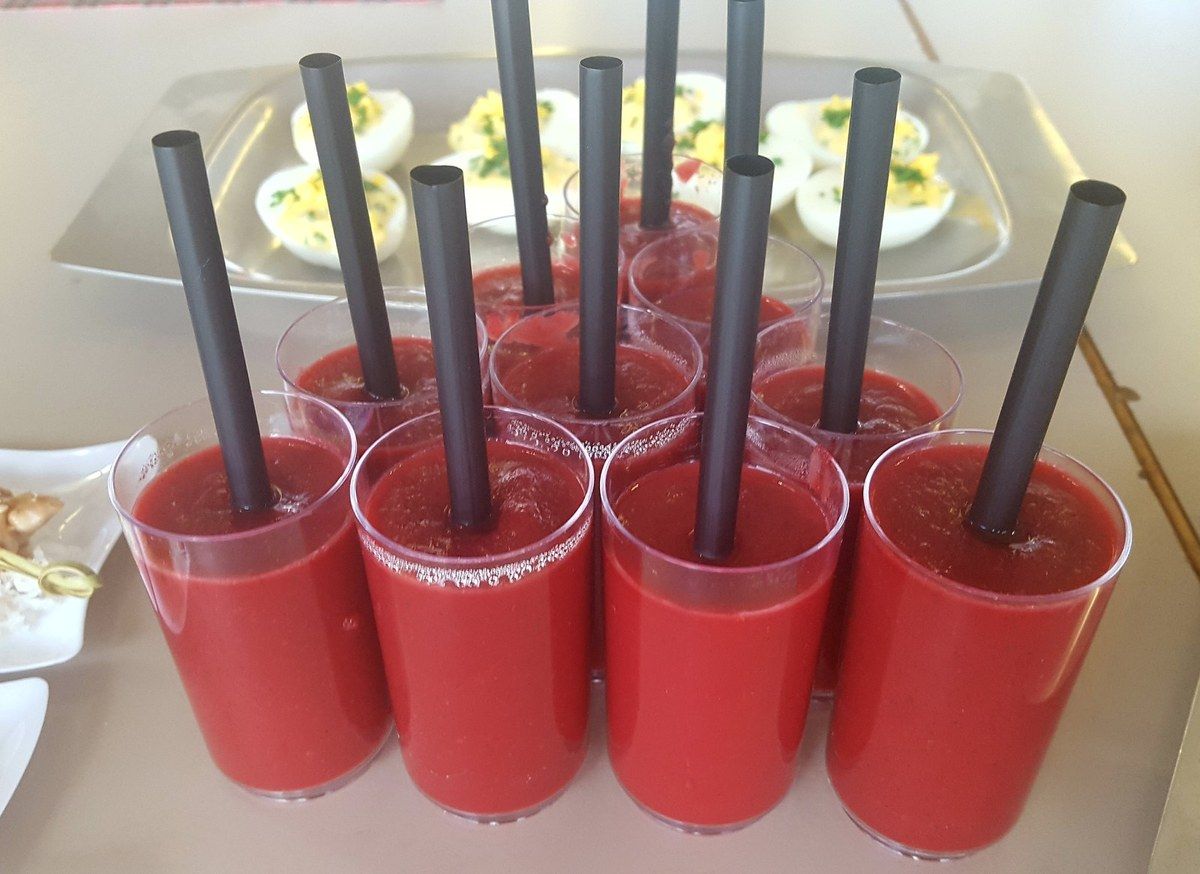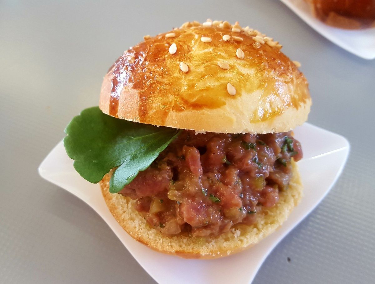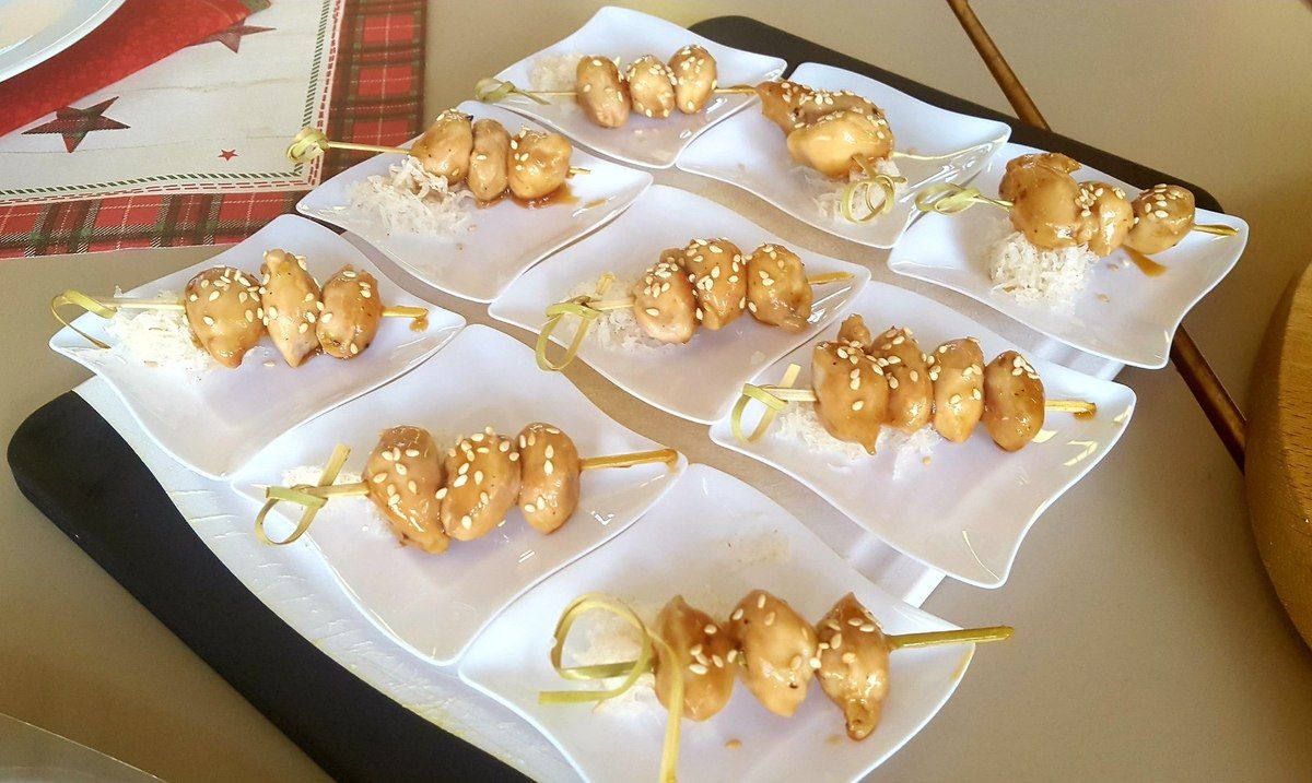 Au menu, 10 amuse-bouche: panna cotta de foie gras et coulis de fruits de la passion, crème de gorgonzola tomates et bacon, chaussons au thon et aux crevettes, soupe de betterave froide épicée au gingembre et citron vert, brochettes de sot-l'y-laisse à la japonaise, rillettes aux deux saumons, samossas exotiques au boeuf et petits pois, purée de panais avec magrets de canard fumés et roquette, minis burgers de tartare de boeuf, oeufs mimosa.