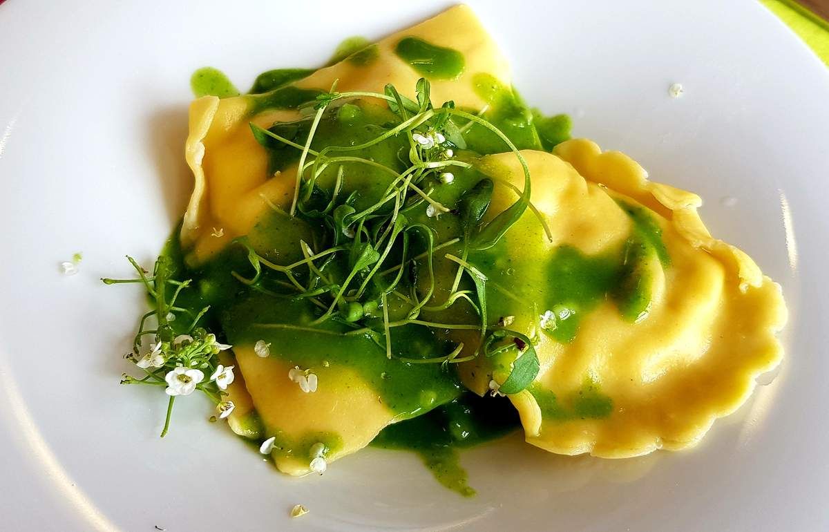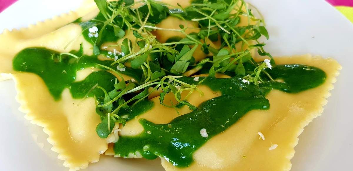 Des ravioles farcies de poisson et crevettes accompagnées d'un jus de cresson et persil, tout beau, tout vert, tout lisse. De quoi épater vos invités.