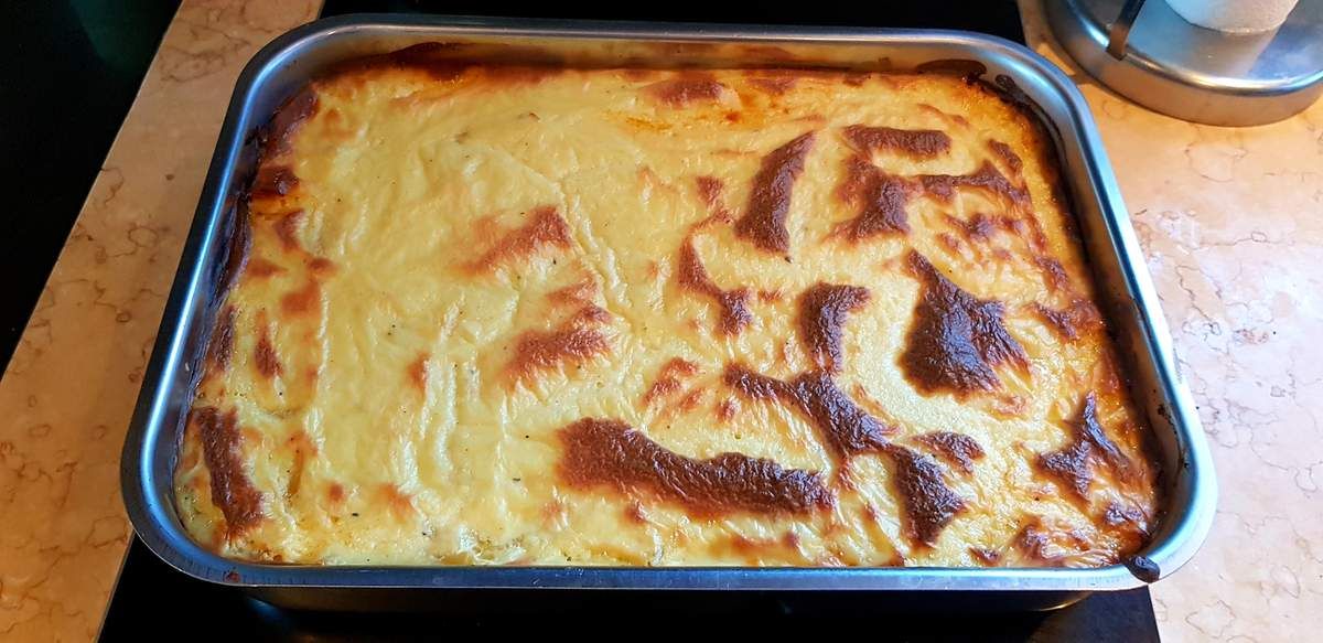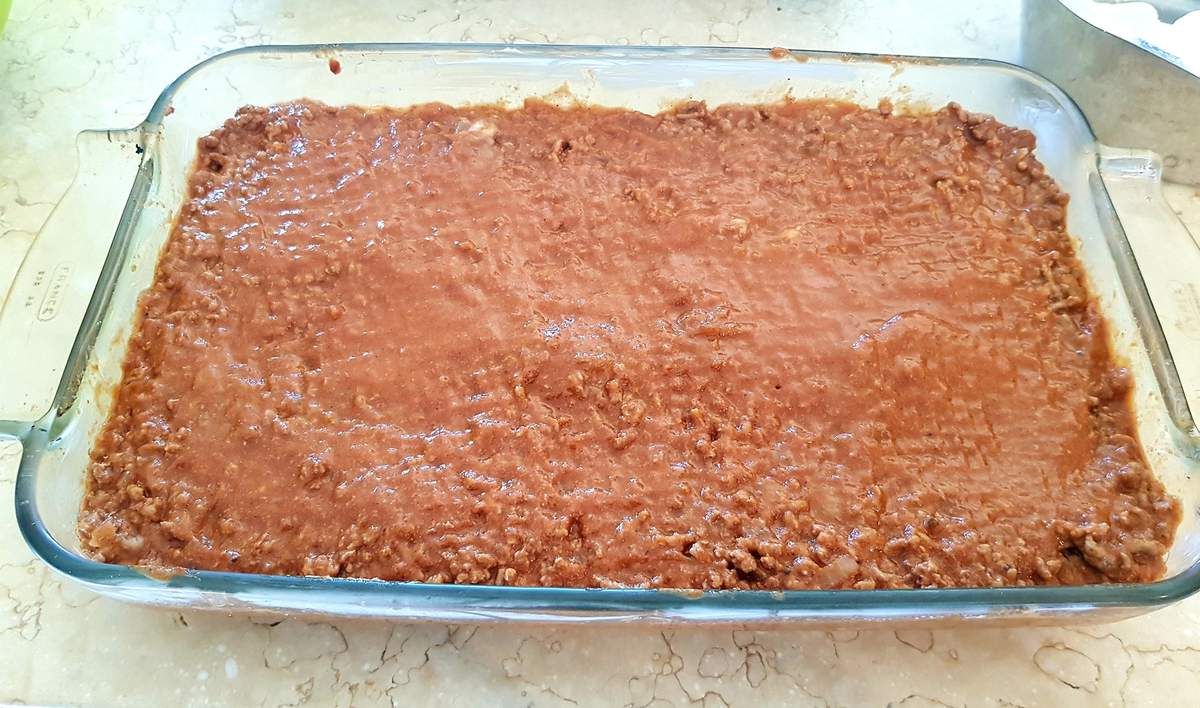 6) Préchauffer le four à 180°C. Dans un plat à gratin beurré, faire le montage: déposer d'abord la moitié des macaronis, puis la viande (lisser et tasser un peu), puis l'autre moitié des macaronis, puis la béchamel. Enfourner au milieu du four pour 30 à 40°C jusqu'à coloration de la béchamel. Si elle brunit trop en cours de cuisson, recouvrir avec une feuille d'alu. Sortir du four, laisser reposer 3 minutes et servir. MIAAAAAM!