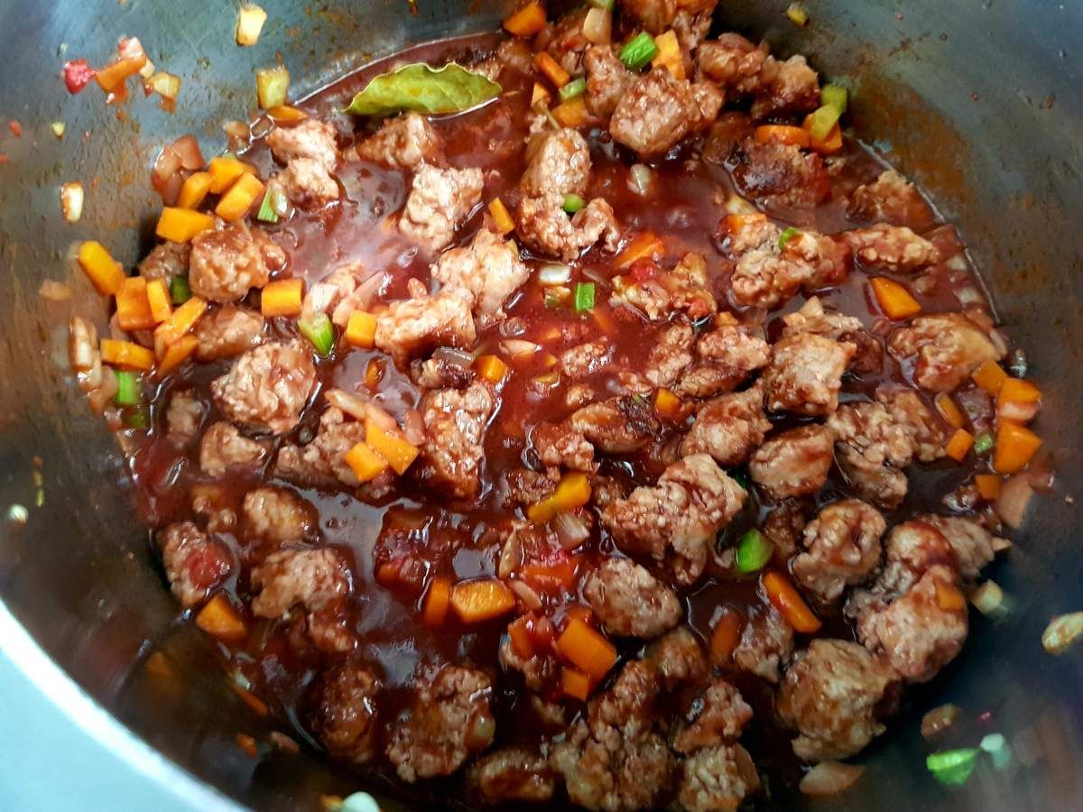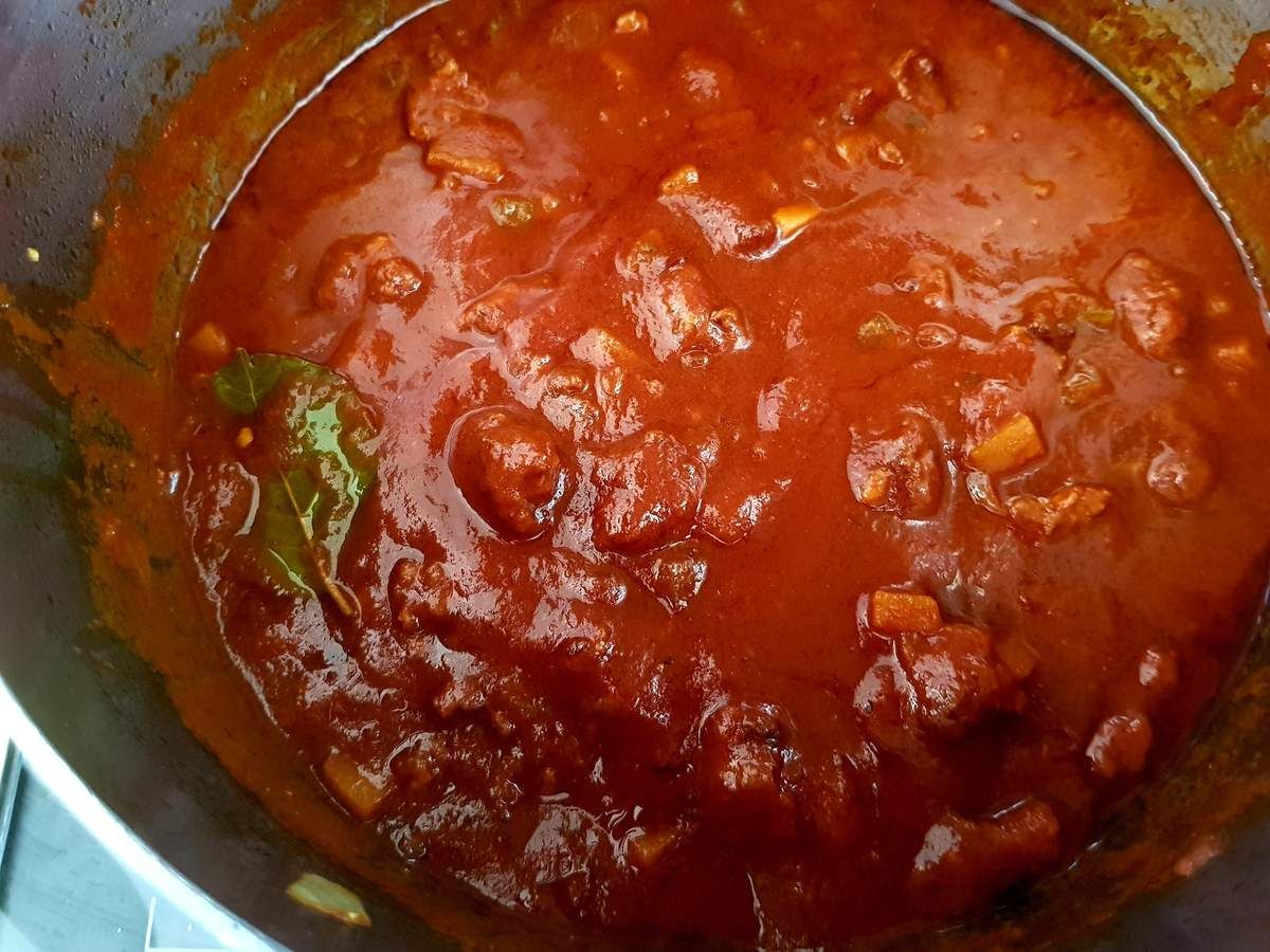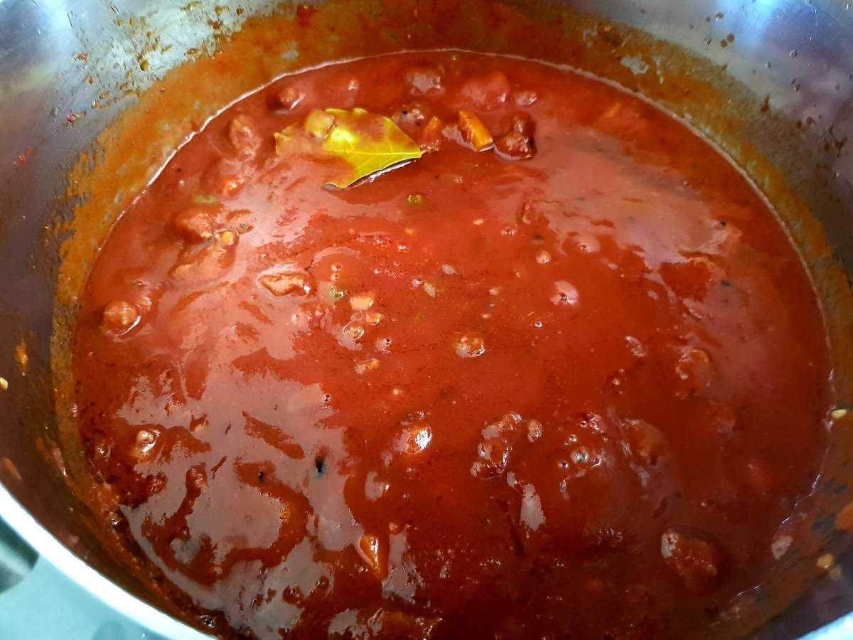 Faites gaffe à ne pas saler la sauce. Attendez la toute fin de la cuisson et goûtez. La saucisse sale déjà la sauce et en mijotant, les saveurs se développent. Elle doit être relevée, mais à vous d'adapter la quantité de piments selon ce que vous préférez.