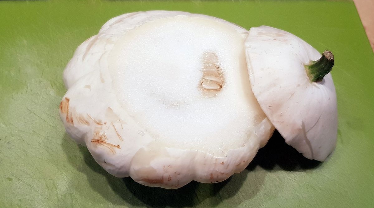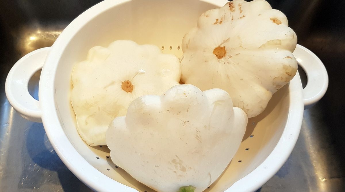 Courge, butternut, potimarron, je connais et j'adore. Mais le pâtisson, lui, n'avait pas encore fait connaissance avec mes marmites. Il y en a de plusieurs couleurs (blancs, oranges, verts et blancs, multicolores...). De forme aplatie, cette cucurbitacée ressemble un peu à une soucoupe volante. Et le truc super intéressant c'est la saveur: on dirait de la courgette mais avec un petit goût d'artichaut. Délicieux!