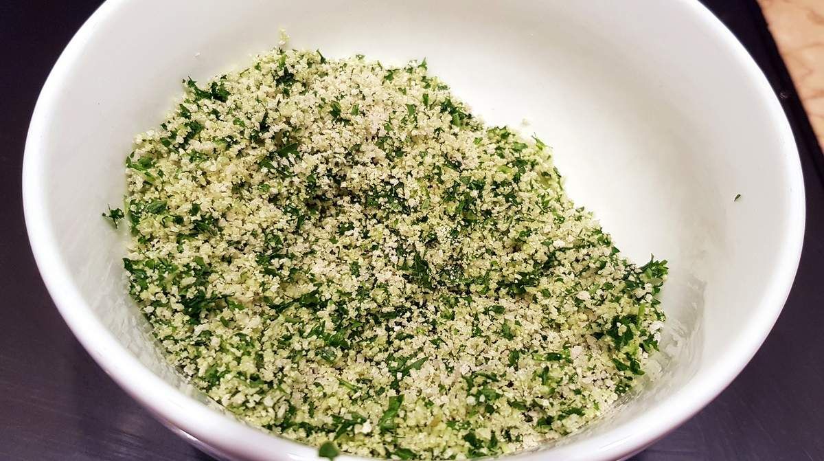 - pour la chapelure: 10g de persil, 4 càs de chapelure, 1 gousse d'ail