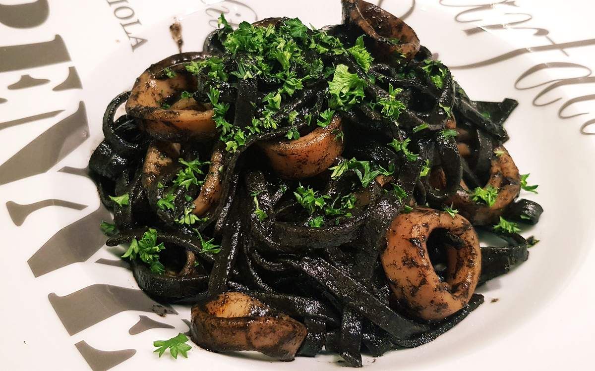 Ah c'est bon. Ah mais oui, je vous le promets, c'est très bon. Cela faisait pas mal de temps que je voulais tester une recette de pâtes avec une sauce à l'encre de seiche. Je le sais bien, on peut trouver de l'encre de seiche... dans la seiche. Dingue. Oui car si vous achetez des seiches qui ne sont pas nettoyées, à vous la petite poche d'encre prête à l'emploi.
