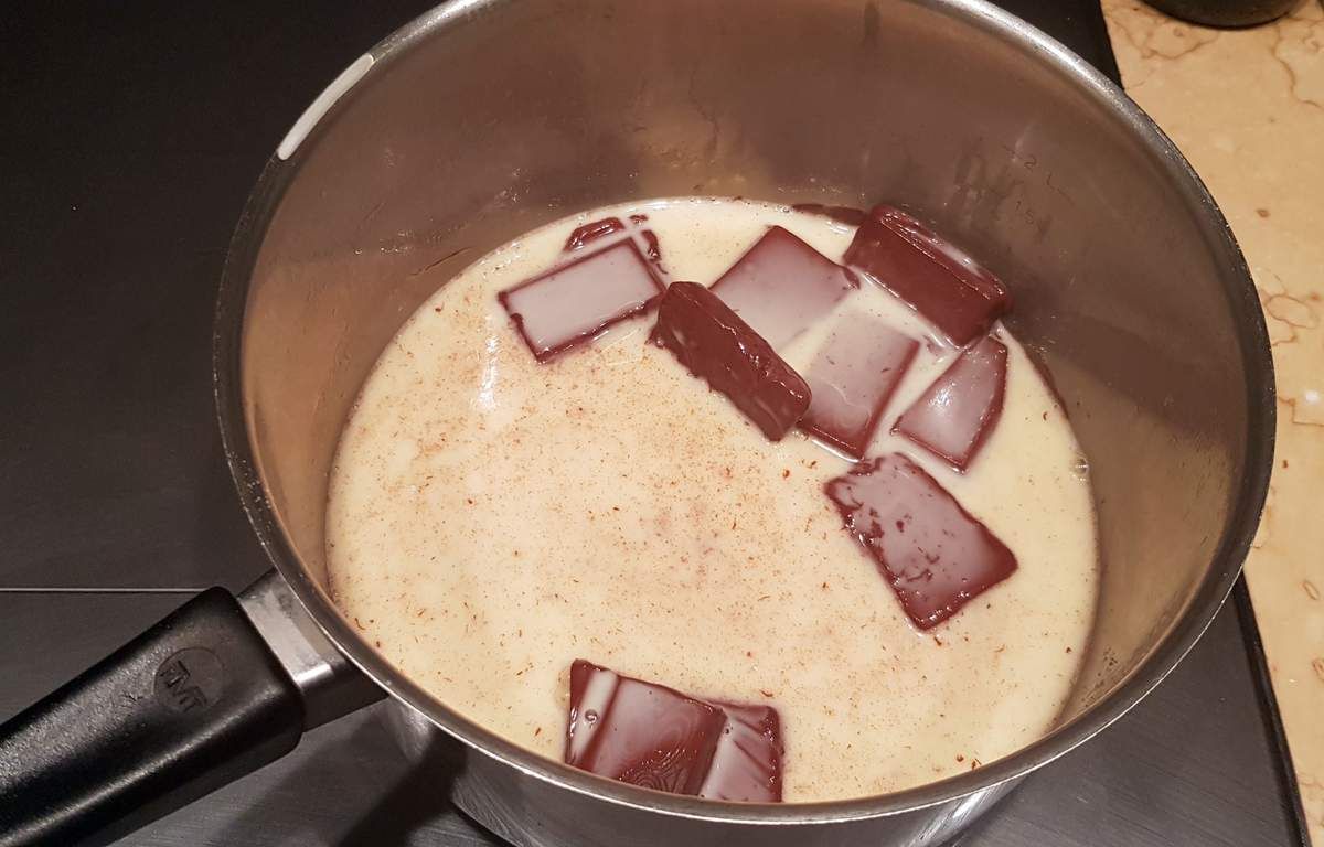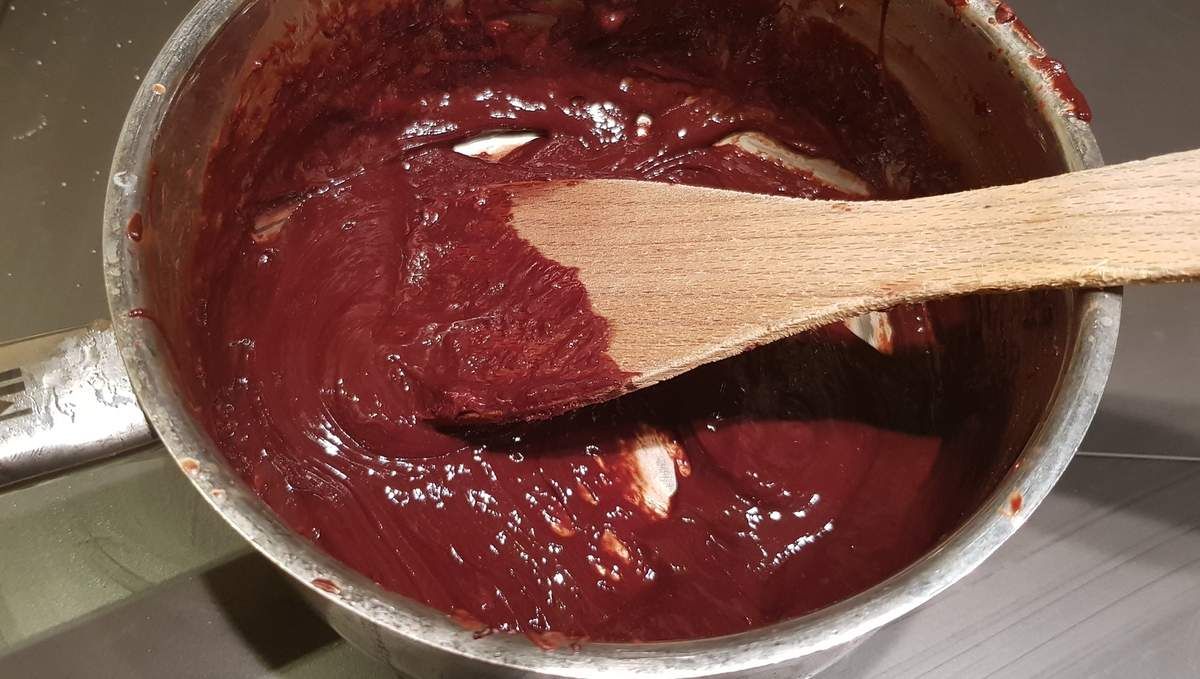 1) Dans une casserole, sur feu doux, faire fondre le chocolat en morceaux avec le beurre en morceaux. Préchauffer le four à 180°c.