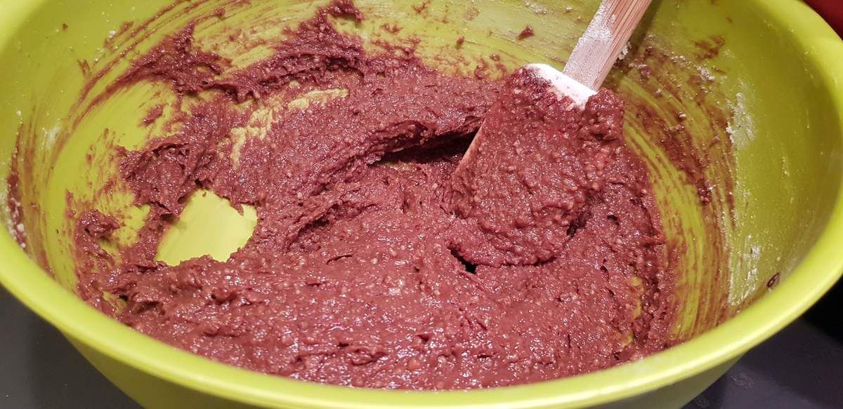 2) Séparer les jaunes des blancs d'oeufs. Dans un récipient, mettre les jaunes d'oeufs et le sucre et bien mélanger. Ajouter le chocolat fondu avec le beurre, mélanger. Ajouter ensuite la poudre d'amandes, mélanger. Puis la farine, mélanger.