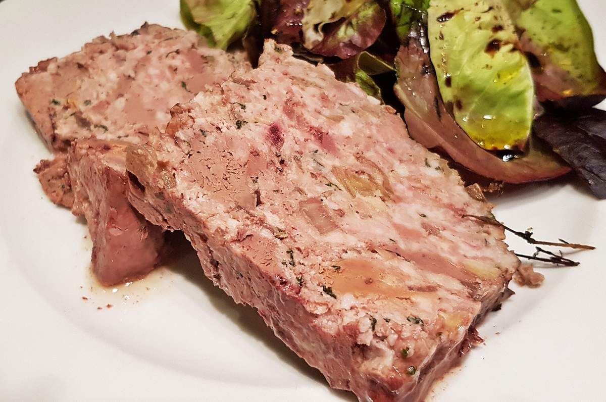 Dans une terrine, on peut y mettre plein de choses. Mais ce qui est certain, c'est que pour faire une bonne terrine à la viande, il faut une bonne proportion de morceaux gras. C'est comme ça. Sinon la terrine est trop sèche et ça, c'est pas bon.