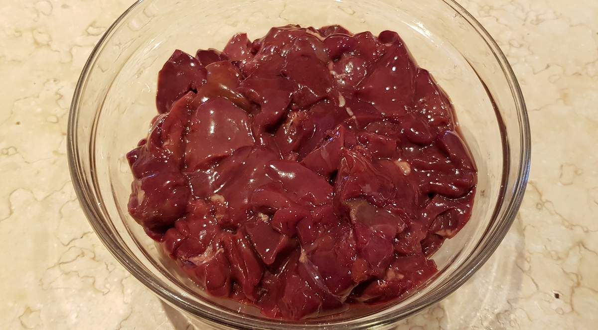2) Rincer les foies sous l'eau froide. Enlever les veines des foies et couper grossièrement. Moi j'aime bien les gros morceaux de foie dans la terrine, cela donne de la couleur et de la texture, mais vous pouvez aussi hacher les morceaux plus finement si vous préférez.