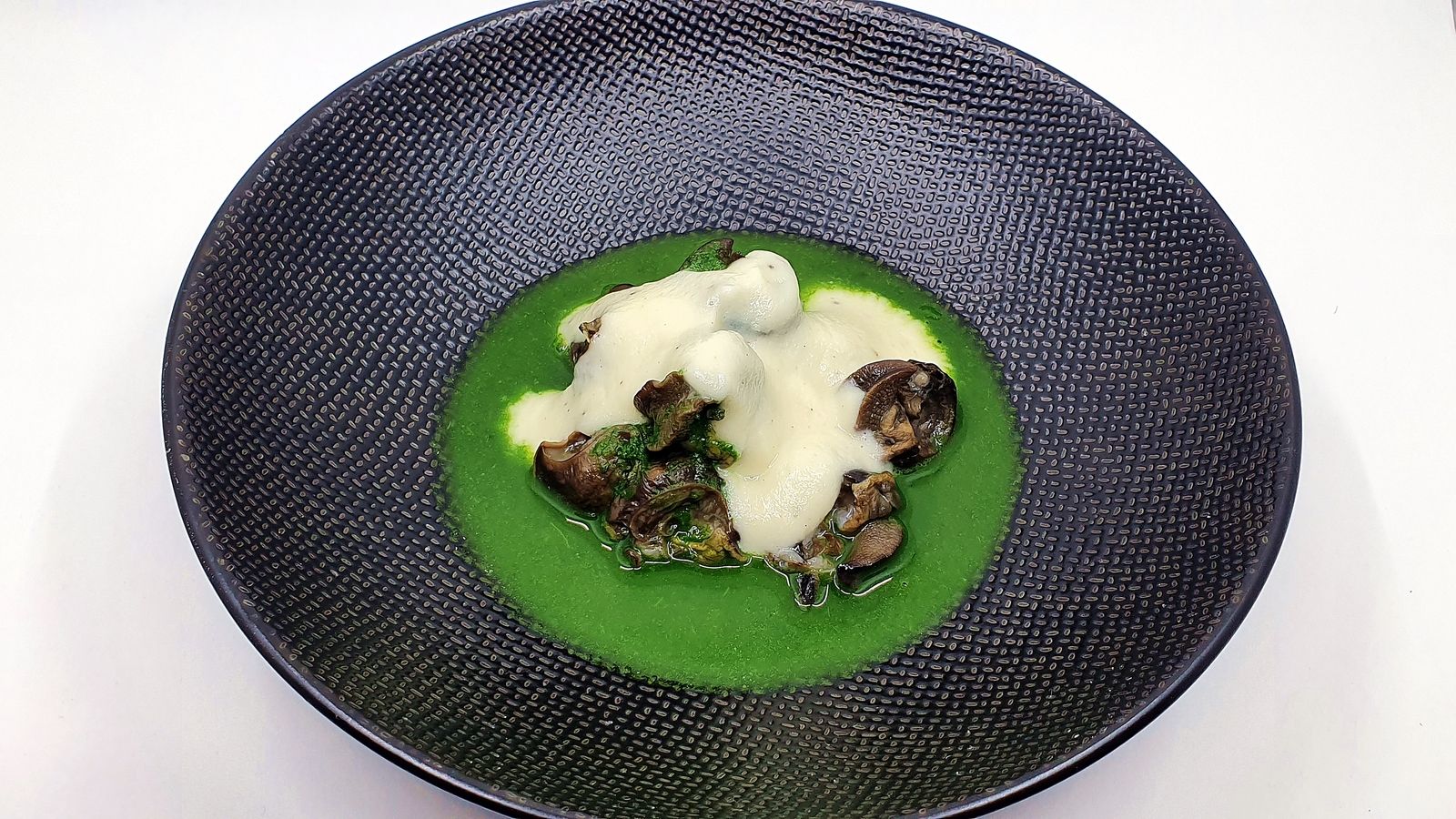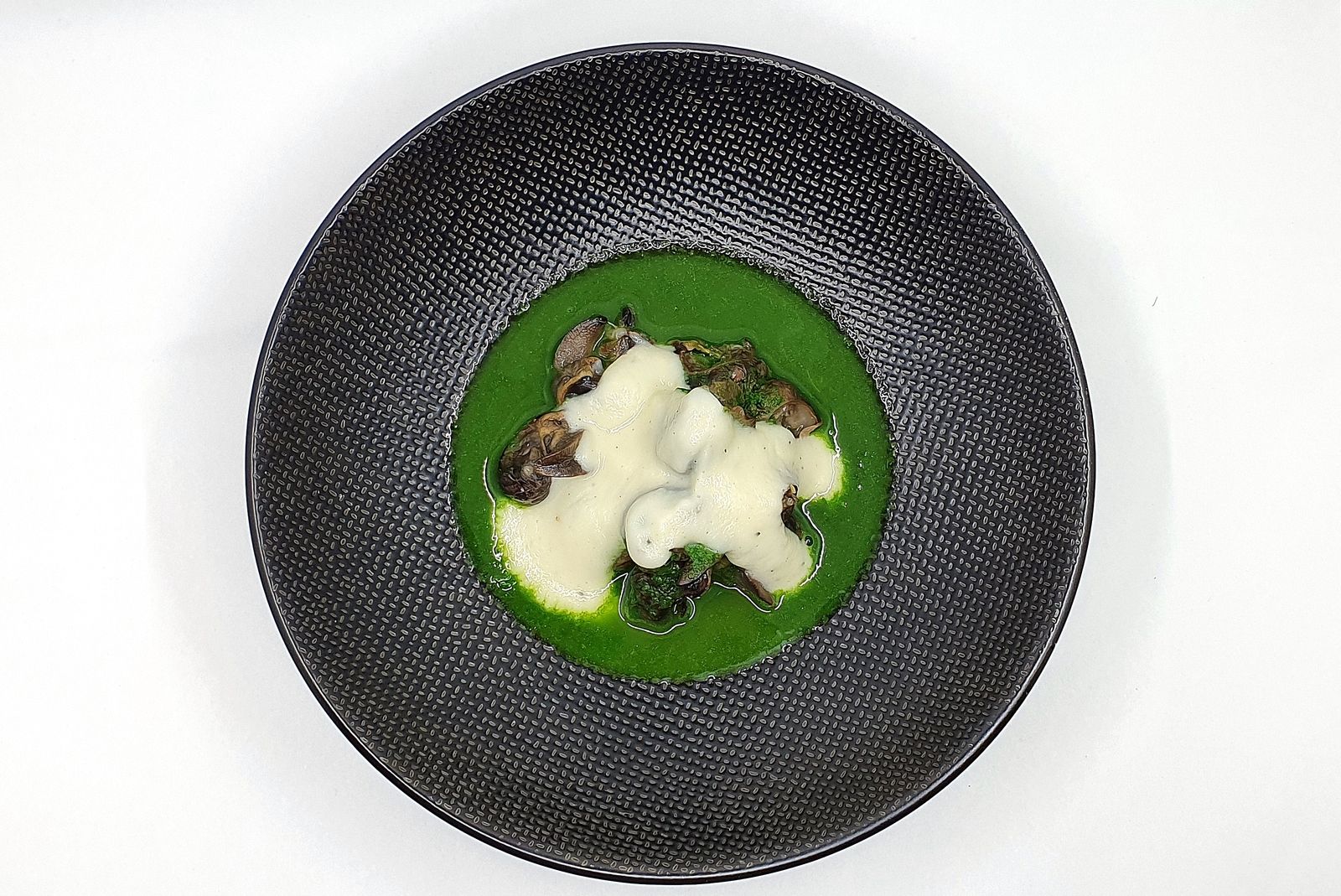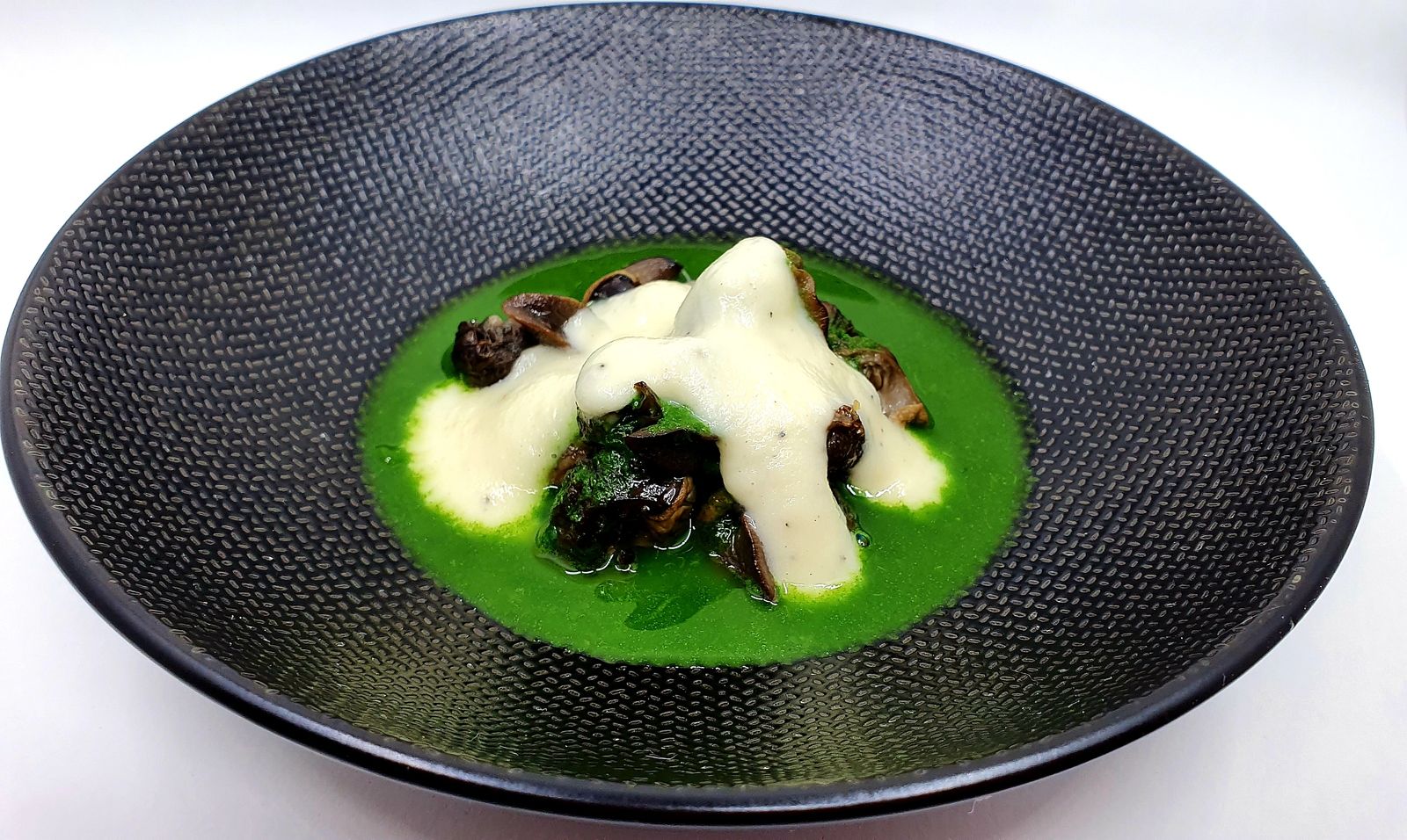 Escargots sur jus de persil et crème d'ailEscargots sur jus de persil et crème d'ail