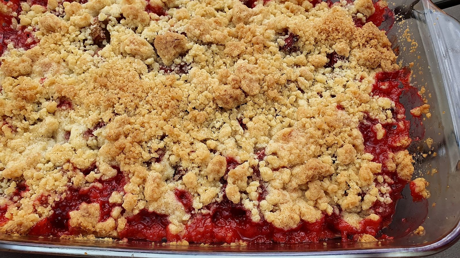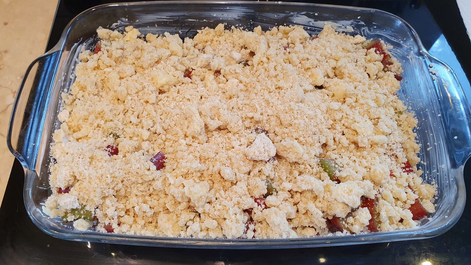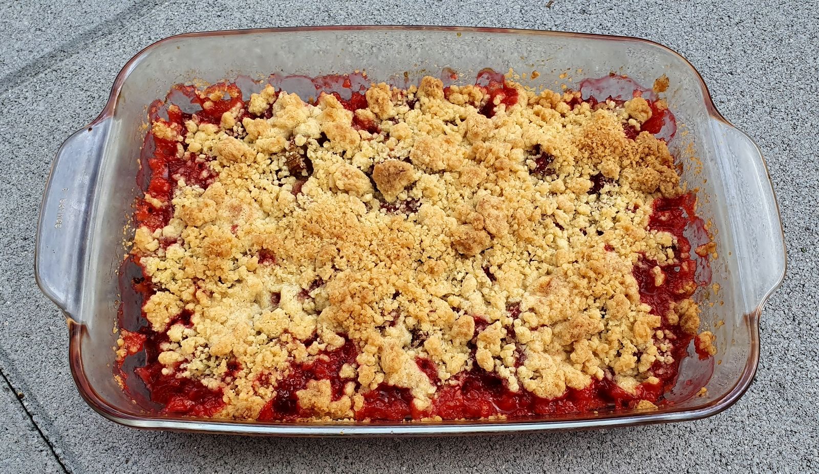 4) Enfourner au milieu du four pour environ 35 minutes. La rhubarbe doit être bien cuite et le crumble doré (surveiller la cuisson). Sortir du four et laisser reposer 10 à 15 minutes puis servir. Tiède c'est un délice!