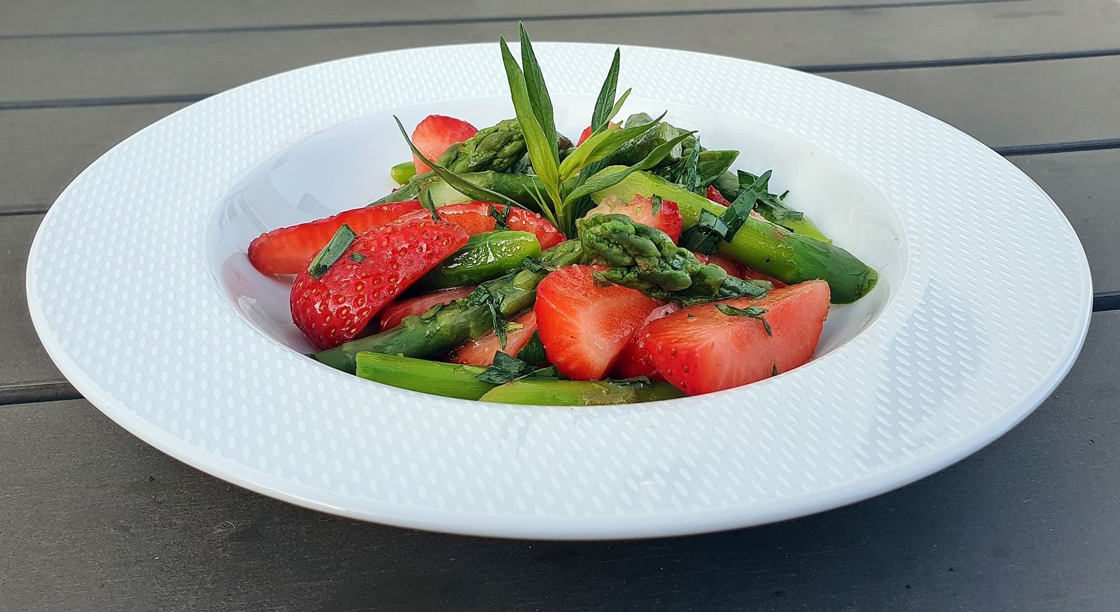 Mais pas que de saison. Une recette surprenante, originale et savoureuse. Les asperges et les fraises se marient à merveille. Et l'estragon infusé dans la vinaigrette au citron et au miel viendra bénir ce mariage heureux et prometteur.