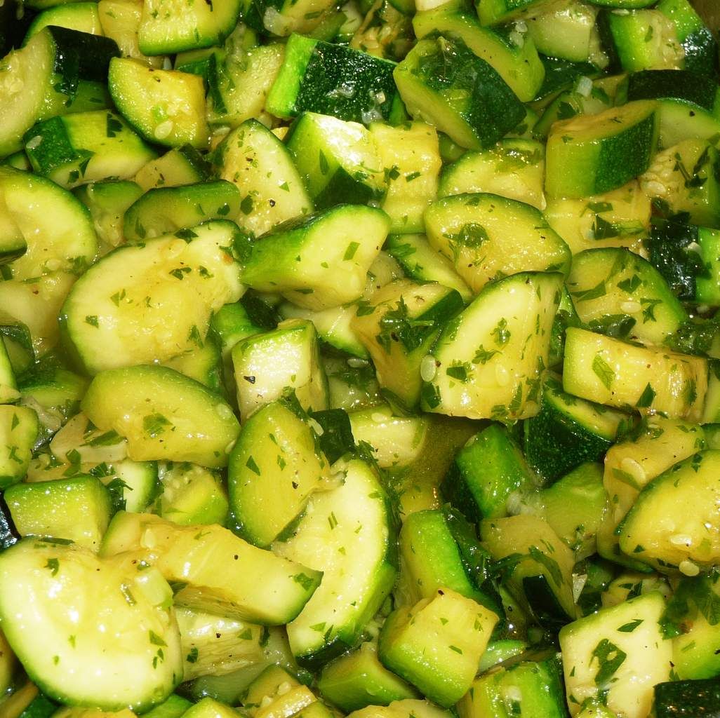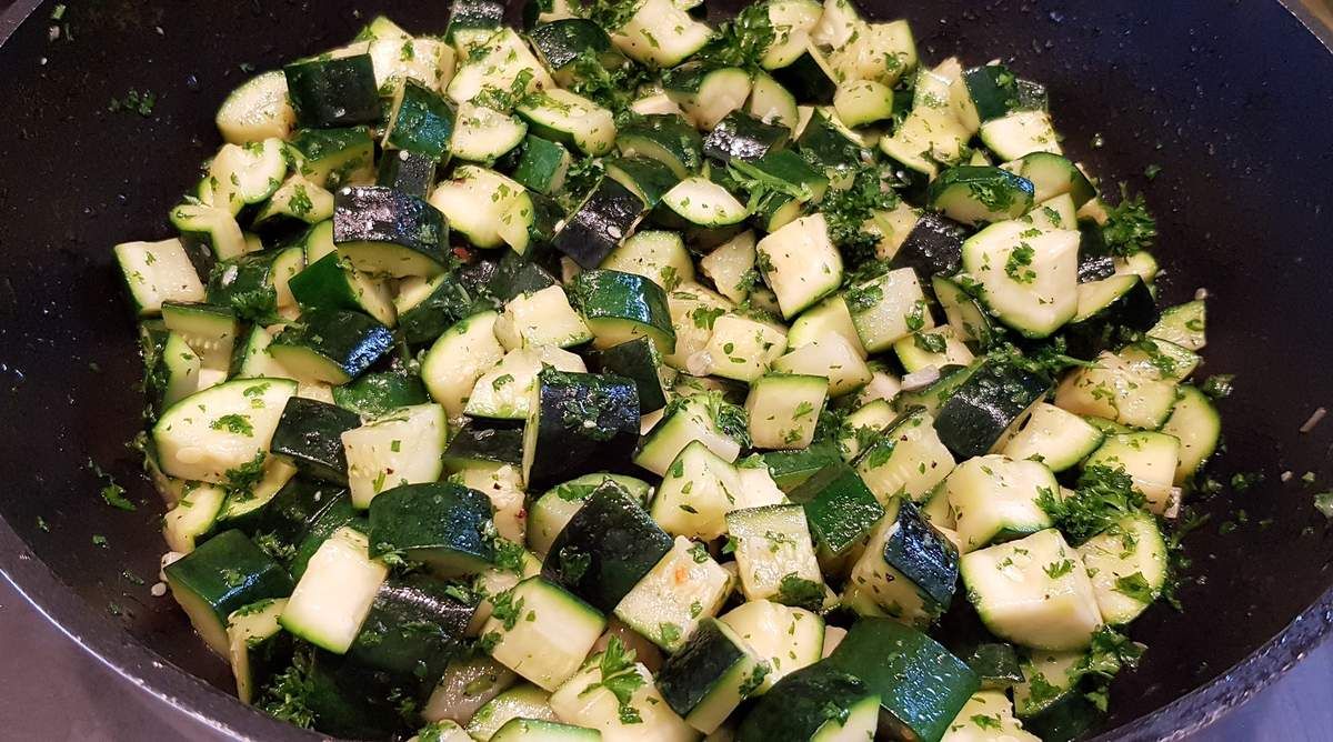 6) Lorsque les courgettes sont cuites (presque al dente), ajouter le persil, goûter et rectifier l'assaisonnement. Servir.
