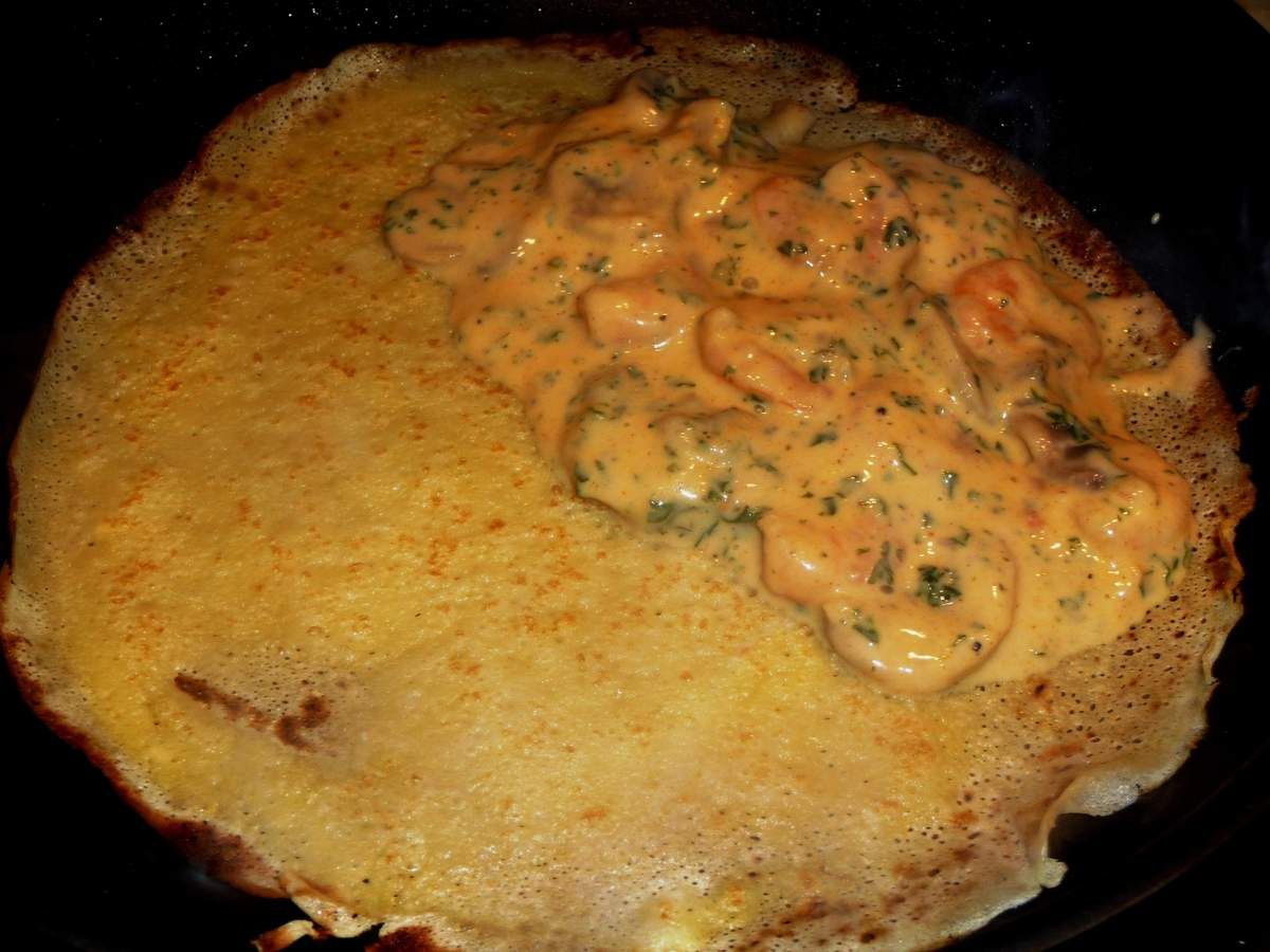 4) Ajouter la béchamel et réchauffer 2 minutes. Utiliser cette garniture sur la crêpe. MIAM!