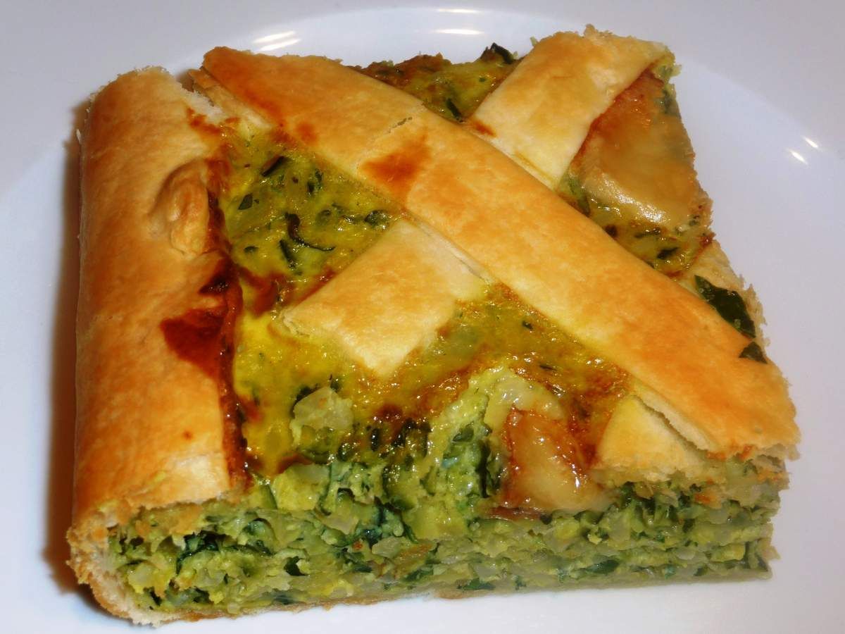 6) Préchauffer votre four à 200°C. Avec un petit couteau, couper la pâte sur le plat du moule et rabattre les bords sur la farce. Découper des languettes dans le reste de la pâte et déposer en croisillons sur la farce. Déposer des lamelles de gruyère dans les interstices. Tremper dans de l'eau froide un pinceau et badigeonner les lamelles de pâte.