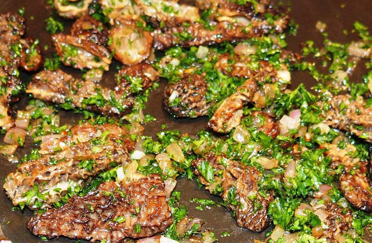 1) Tremper les morilles quelques heures au préalable dans un bol d'eau tiède. Laver soigneusement vos morilles en les coupant en 2 dans la longueur et en les passant sous un filet d'eau une par une. Couper les plus grosses en deux. Réserver.