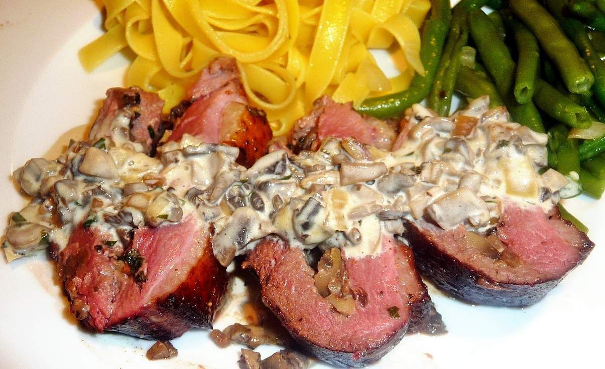 13) Napper de sauce aux champignons et servir avec des tagliatelles par exemple...